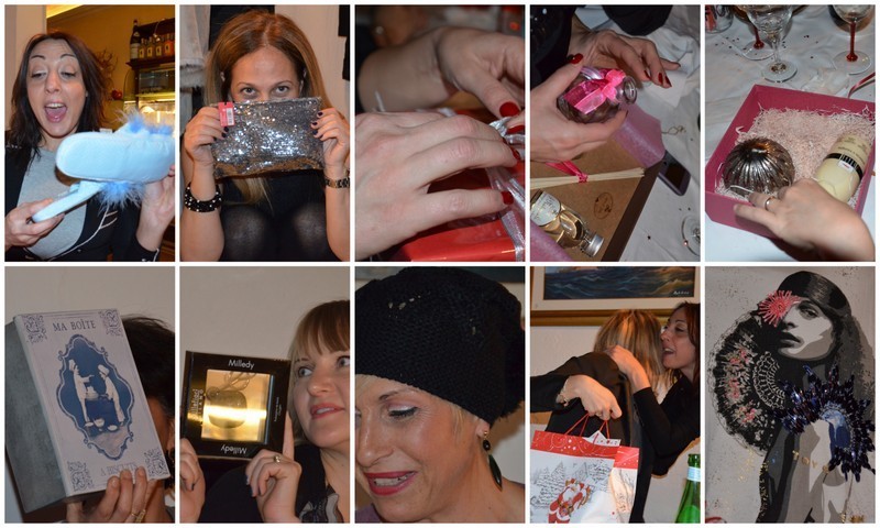 La tradizione è ognuna di noi compera un pensierino ed a fine cena c’è il sorteggio (inizialmente doveva essere ognuna “fa con le sue mani“, ma la creatività e la manualità nel nostro gruppo scarseggia notevolmente).