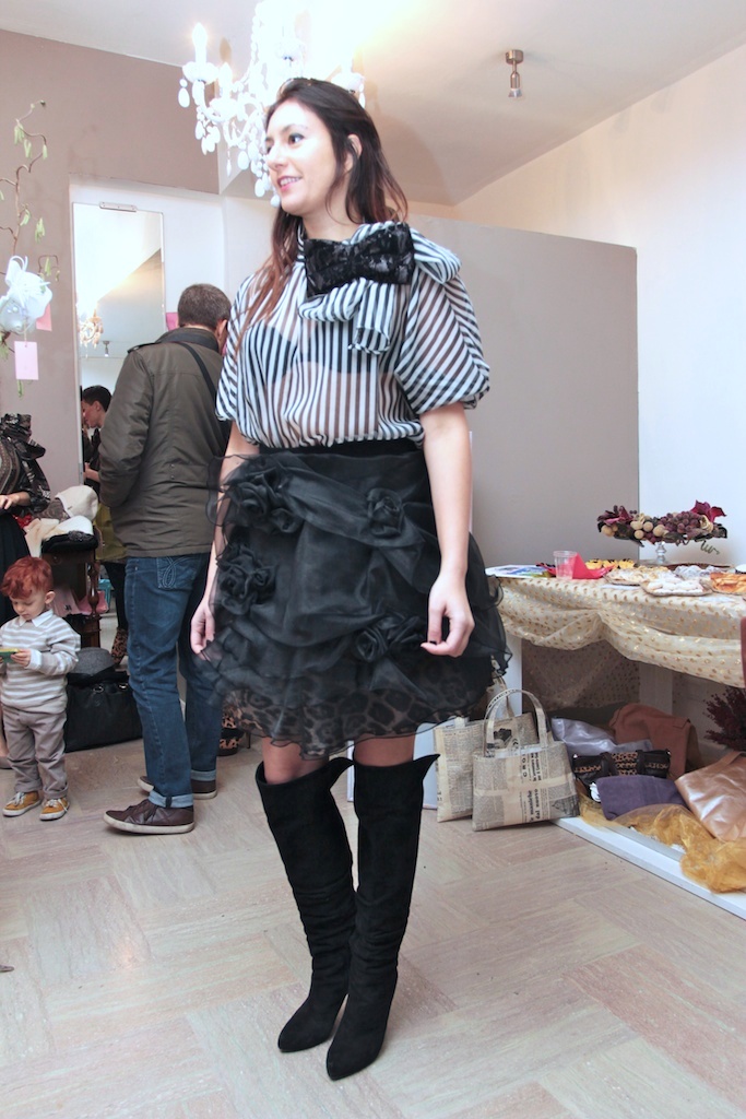 Trovate anche Lucy Fer di Eleonora Ferrari, giovane fashion designer modenese che realizza accessori e abiti artistici per una donna libera che ha voglia di stupire e reinterpretarsi con giochi di stile, colori, tessuti, fiocchi e spensieratezza. Stampe animalier sotto tulle e strati di velo, morbide felpe over smanicate, bluse di chiffon e ruches per una femminilità stravagante e senza età.