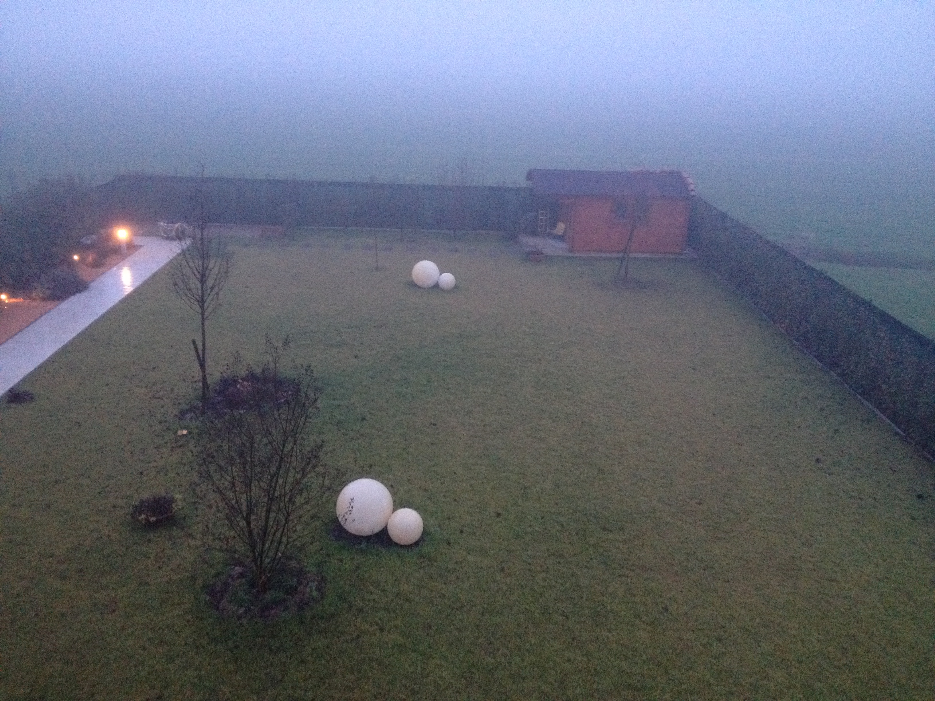 Questo è quello che vedo dalla mia finestra al mattino. Bisogna armarsi di aglio fino ai denti per evitare di scontrarsi con i vampiri! Soluzione? Pensare che prestissimo sarà primavera e poi estate!