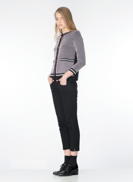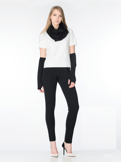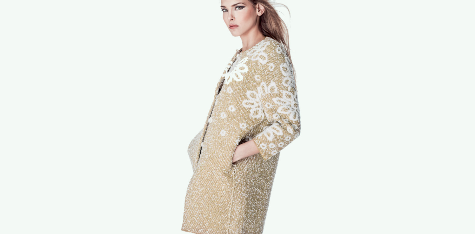 Capispalla dai sofisticati tagli a triangolo, dai colori caldi della terra. Lavorazioni particolari come il punto tridimensionale su giacche e tricot arricchiscono la linea assieme alle tshirt in neoprene. Una collezione che si completa con accessori come colli e manicotti caldi e morbidi.