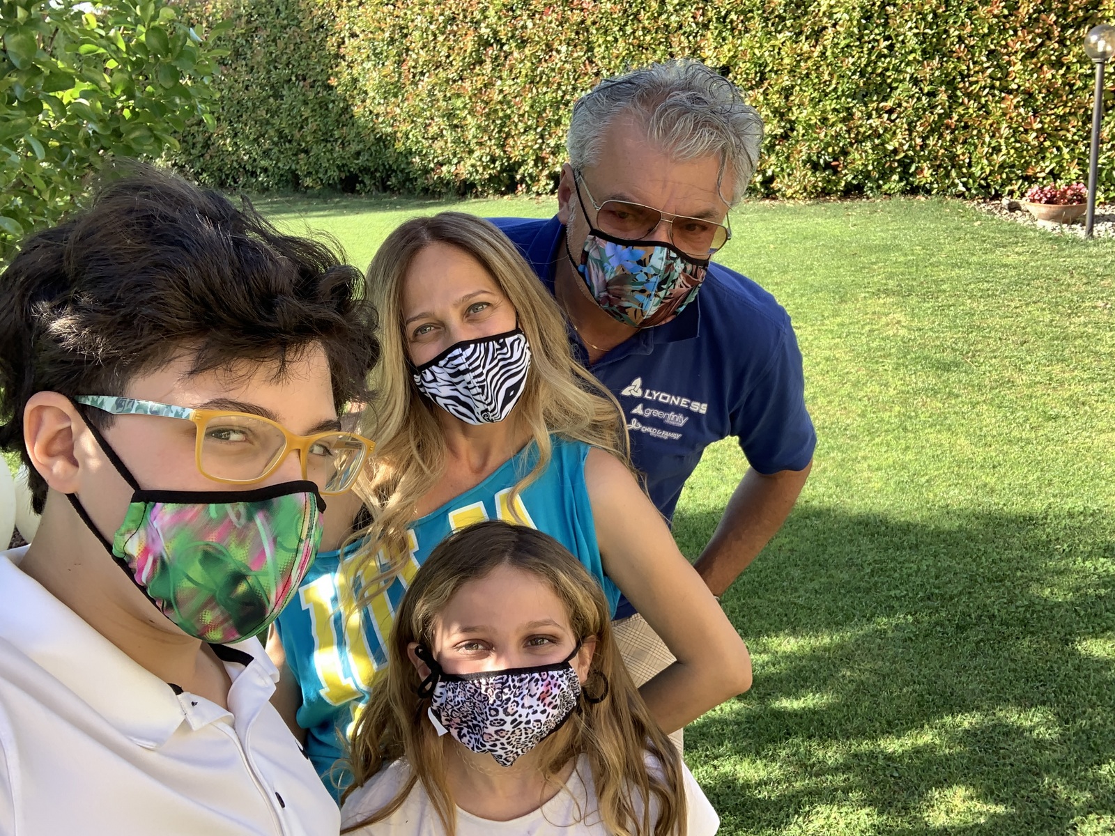 Allora apro la mia gallery con una foto di famiglia alla quale tengo molto, E’ stato Andrea mio figlio a scattarla e a chiedermi una mascherina che fosse fashion e allora ho scoperto Angelo Marani shop.