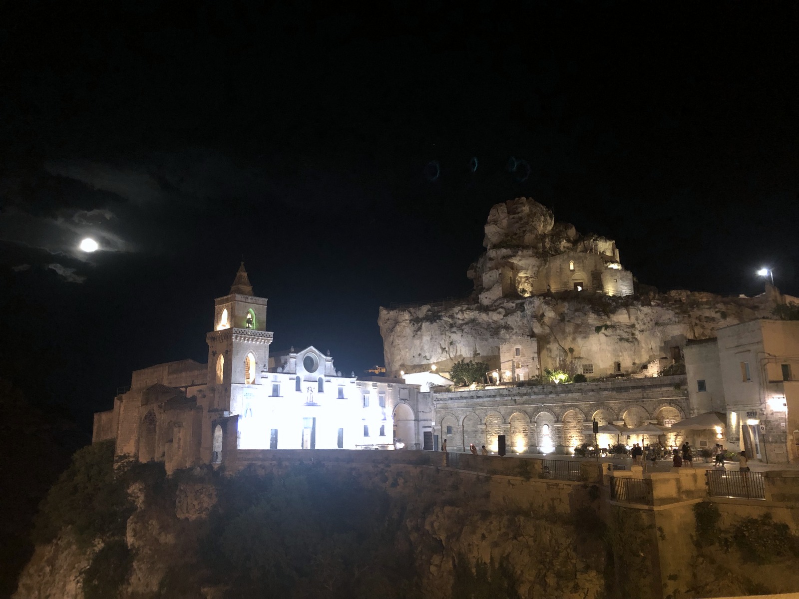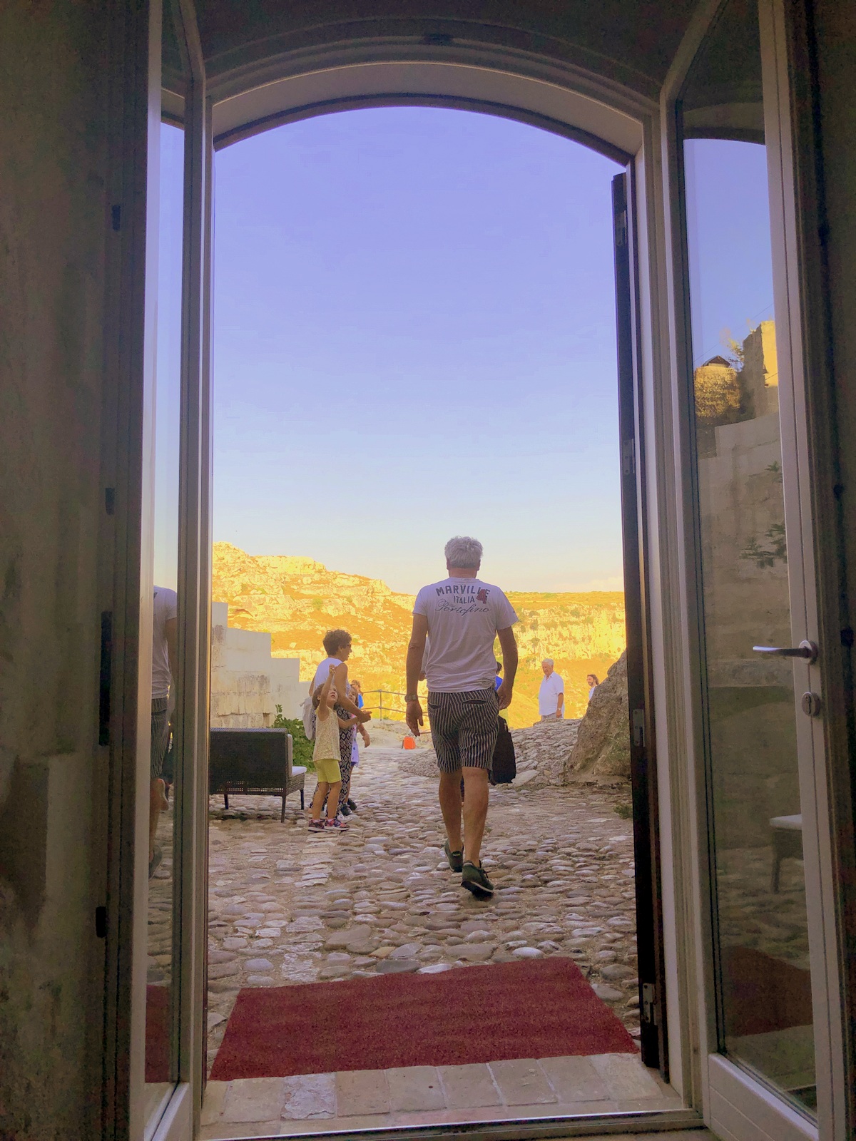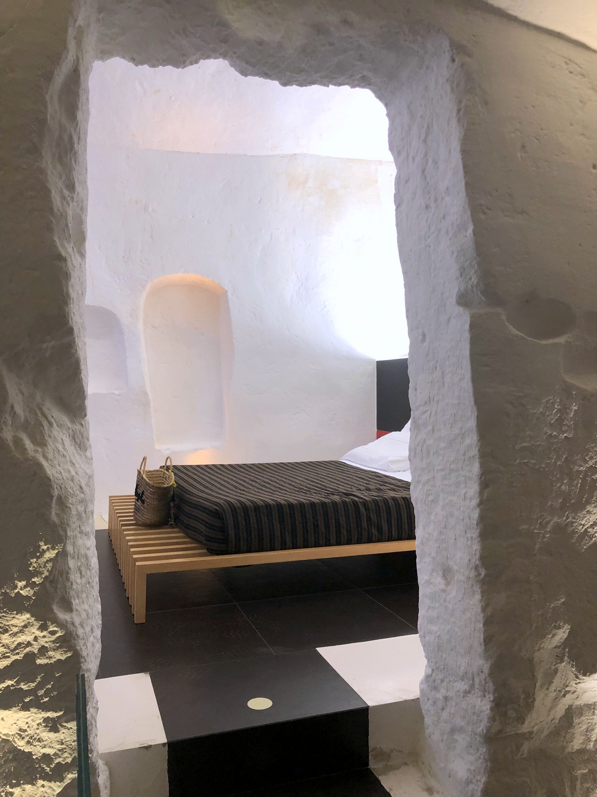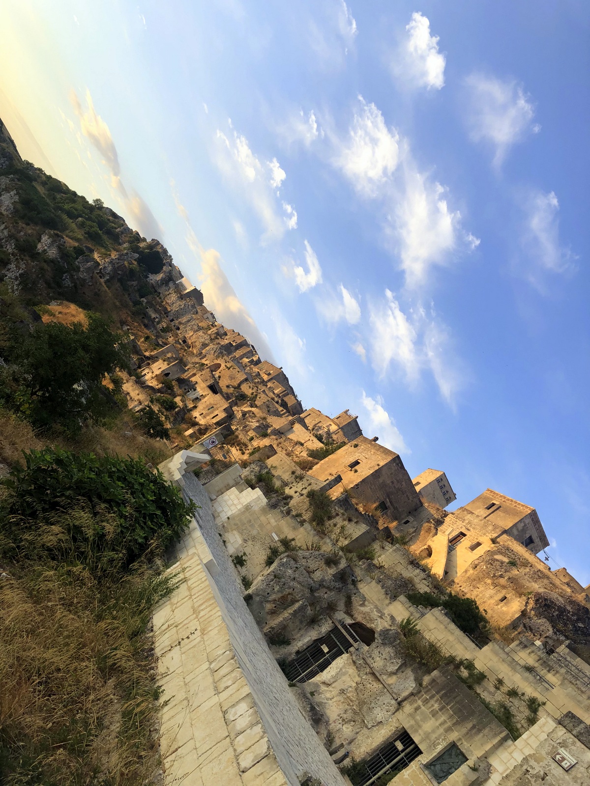 Ho scelto questa seconda location per godere della luce del Sasso Caveoso al mattino che, da qui dicono, sia spettacolare! Le stanze sono tutte scavate nella roccia, calcarenitica detta tufo. La ristrutturazione e il risanamento di questi luoghi ha mantenuto intatto il paesaggio naturale che, con le luci della sera mostrano uno scenario di una bellezza disarmante. Il centro storico di Matera, scavato a ridosso del fiume Gravina, è stato abitato sin dal Paleolitico. Dalla preistoria ad oggi, rabbrividisco al pensiero che qui, in questi posti, abbia avuto origine una delle civiltà più antiche del mondo.