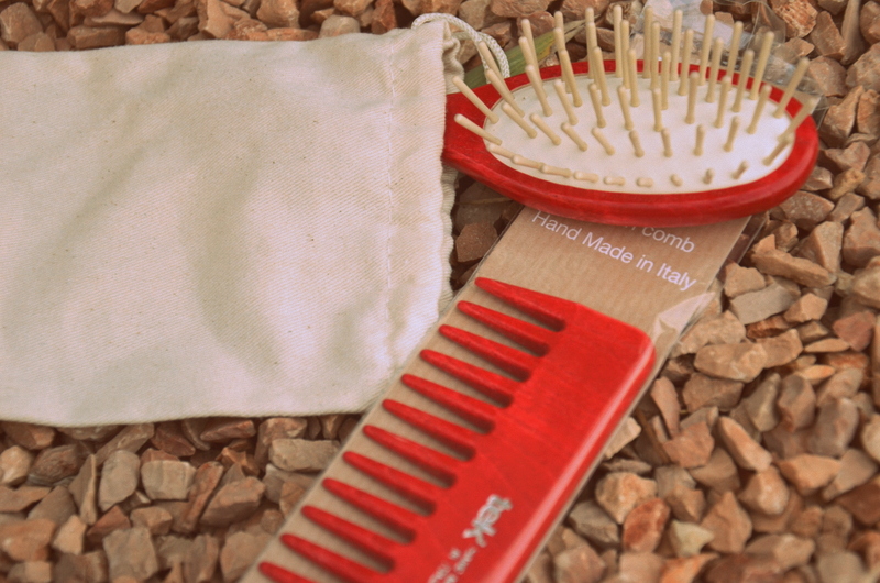 Mani nei capelli o per meglio dire Tek nei capelli, con un comodissimo set spazzola e pettine da borsetta in legno di frassino, colorati con colori atossici e anallergici, dentini in legno di carpine (Made in Italy) in un comodo sacchetto in cotone naturale. Per capelli fieri ed essenziali, un tocco deciso e morbido per sbrogliarli senza spezzarli indicati per tutti anche per i più piccini!