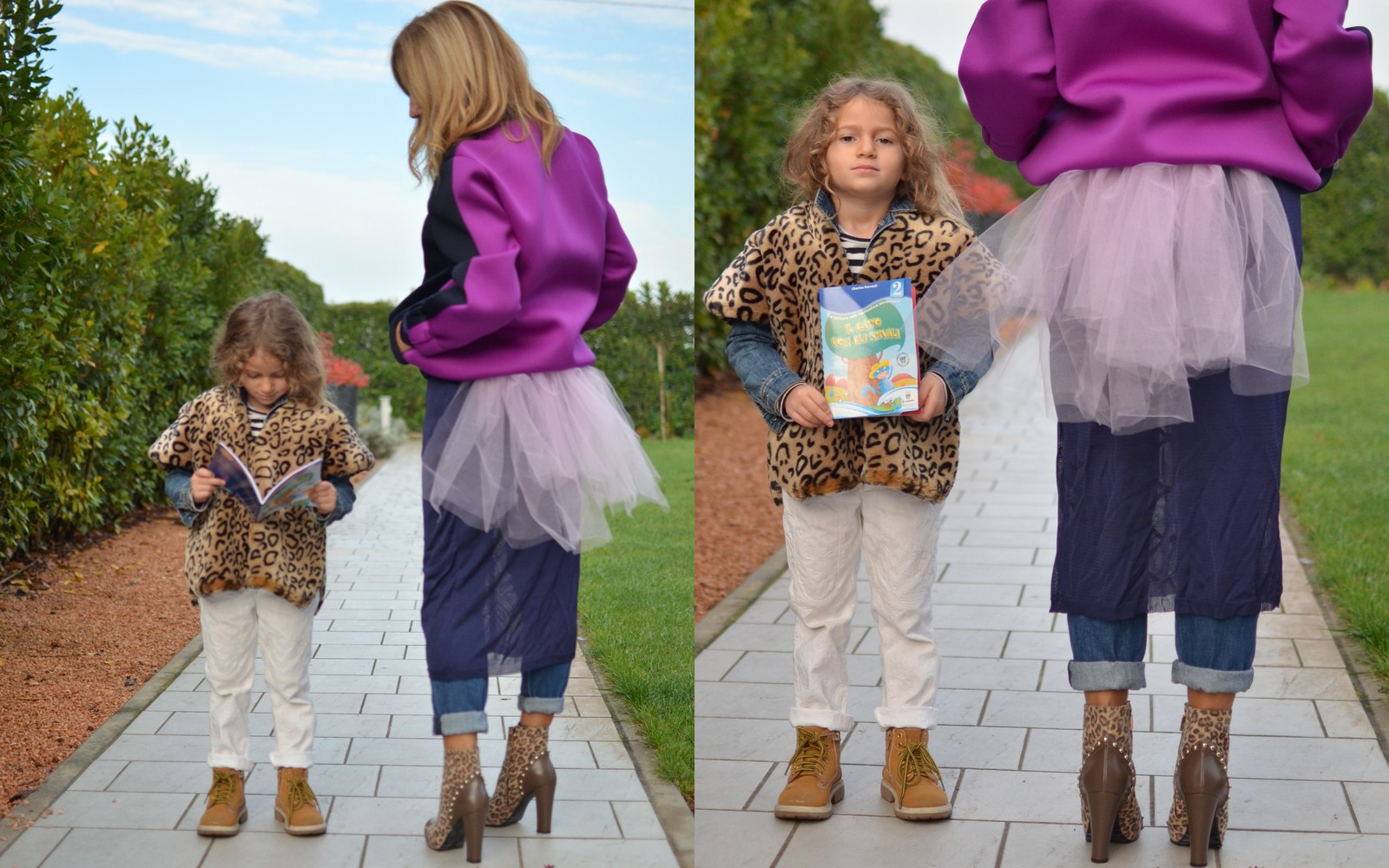 Come sempre i tuoi look sono originali! Che amore la tua bimba….kiss