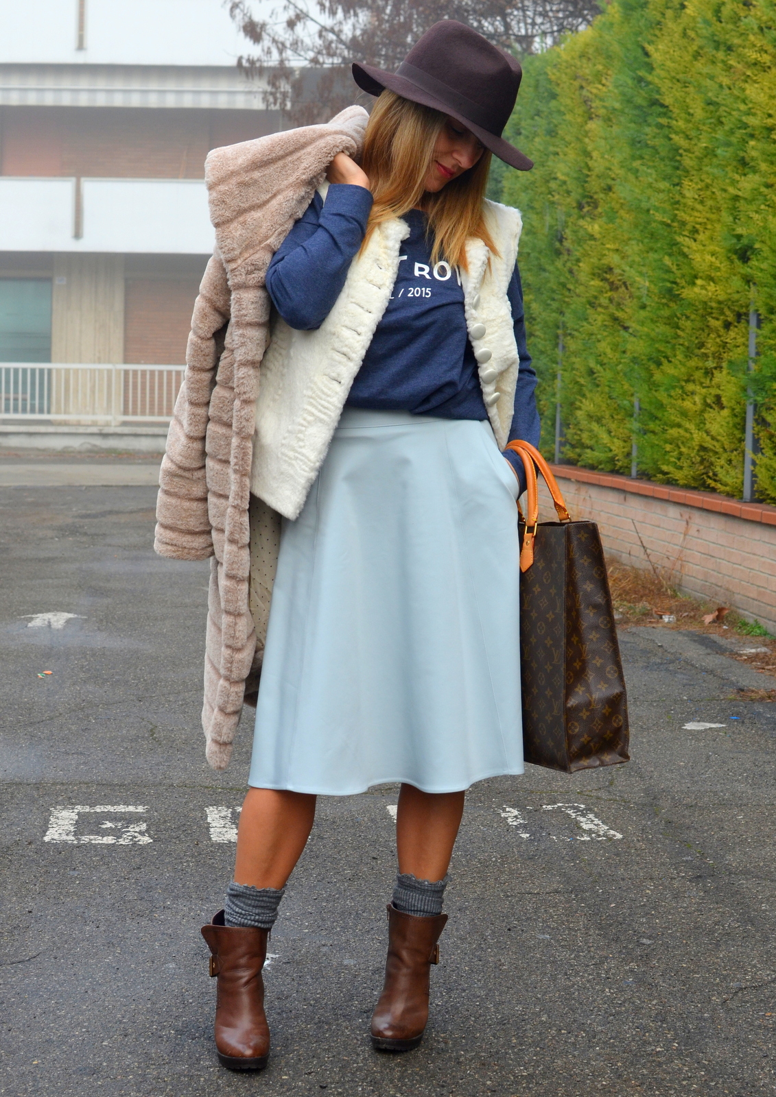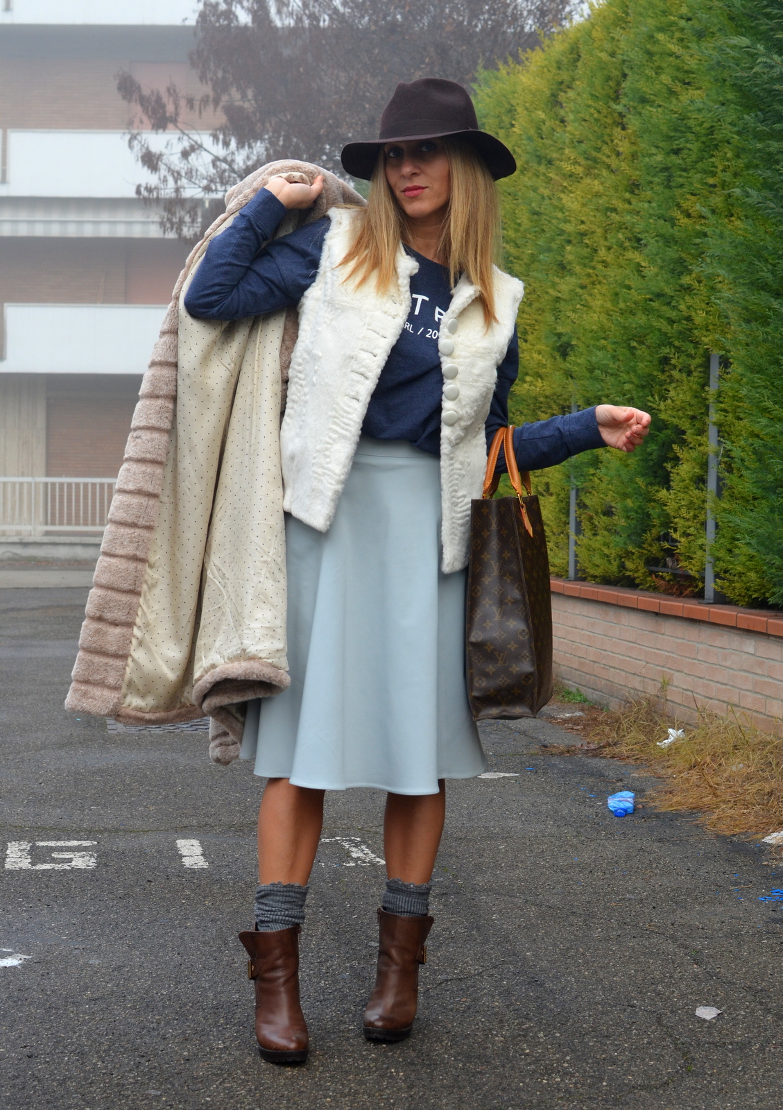 La gonna è meravigliosa, mi piace anche il tuo modo di indossare gli stivaletti con calzettoni a vista. Bellissima!
