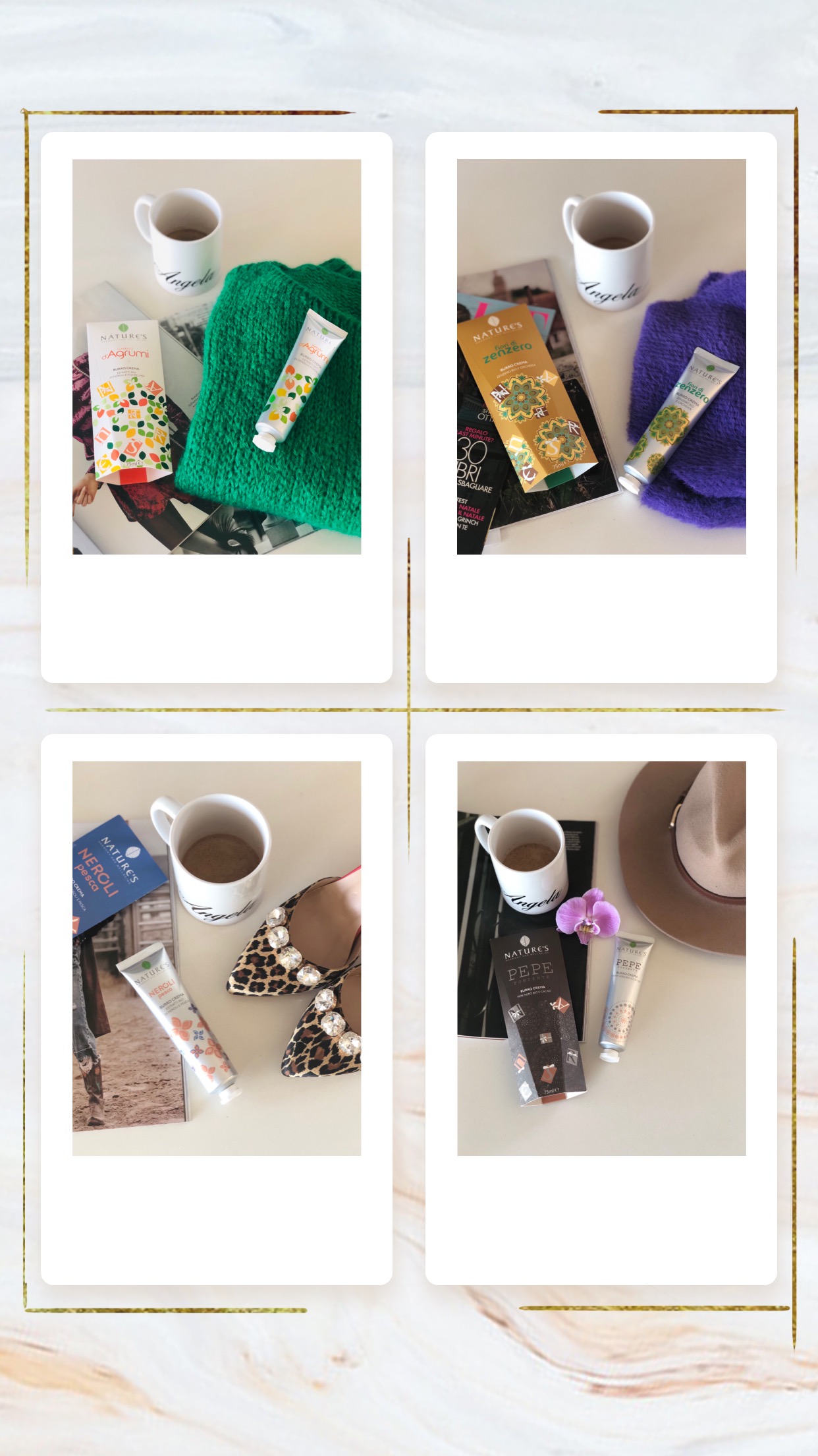 Si tratta di creme ricche di attivi naturali, dalla profumazione delicata, che rendono la pelle vellutata. Queste creme sono adatte a tutte le età, tra le caratteristiche che più apprezzo di questo brand infatti non dimentichiamo che i prodotti Nature’s sono microbiologicamente controllati e dermatologicamente testati, non contengono parabeni, oli minerali né derivati del petrolio e sono indicati anche per le pelli più sensibili. Partiamo subito con il burro crema che mi piace di più? Il Pepe Fondente ovviamente, per la sua profumazione particolarmente pungente!