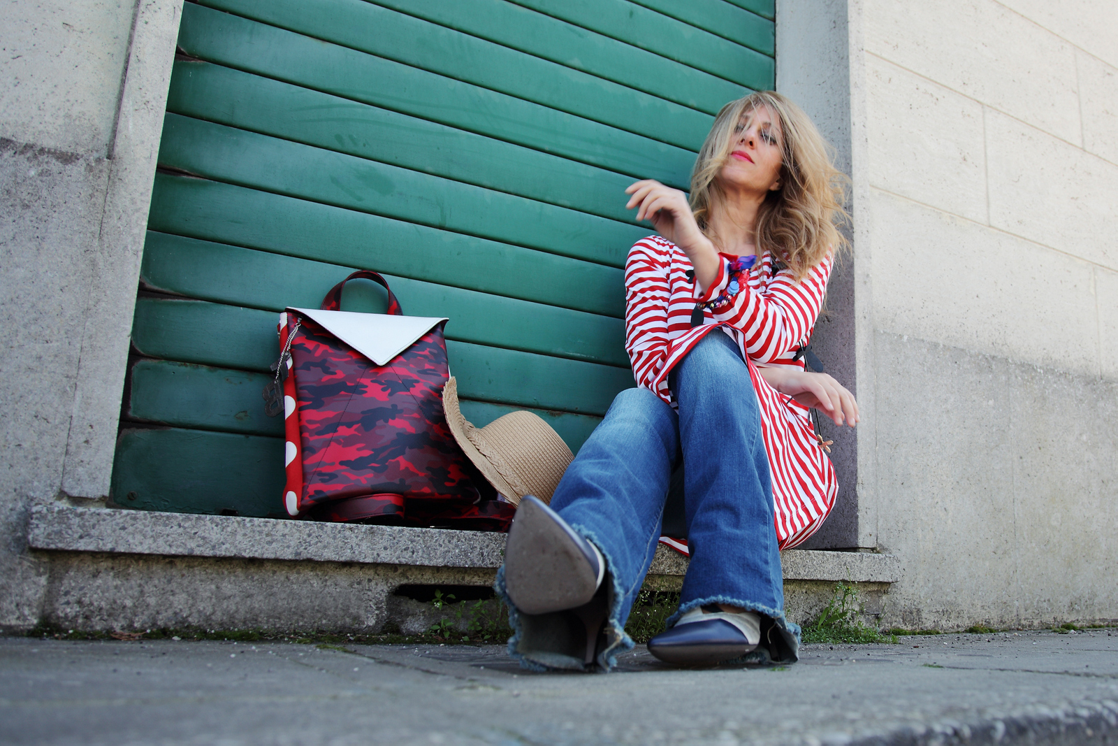 Un look fresco, comodo e versatile. L’abito a righe fa parte della nostra capsule #parakeets per Sathia. Il bracciale è di ChiaraFini e lo zainetto è di Twobet.