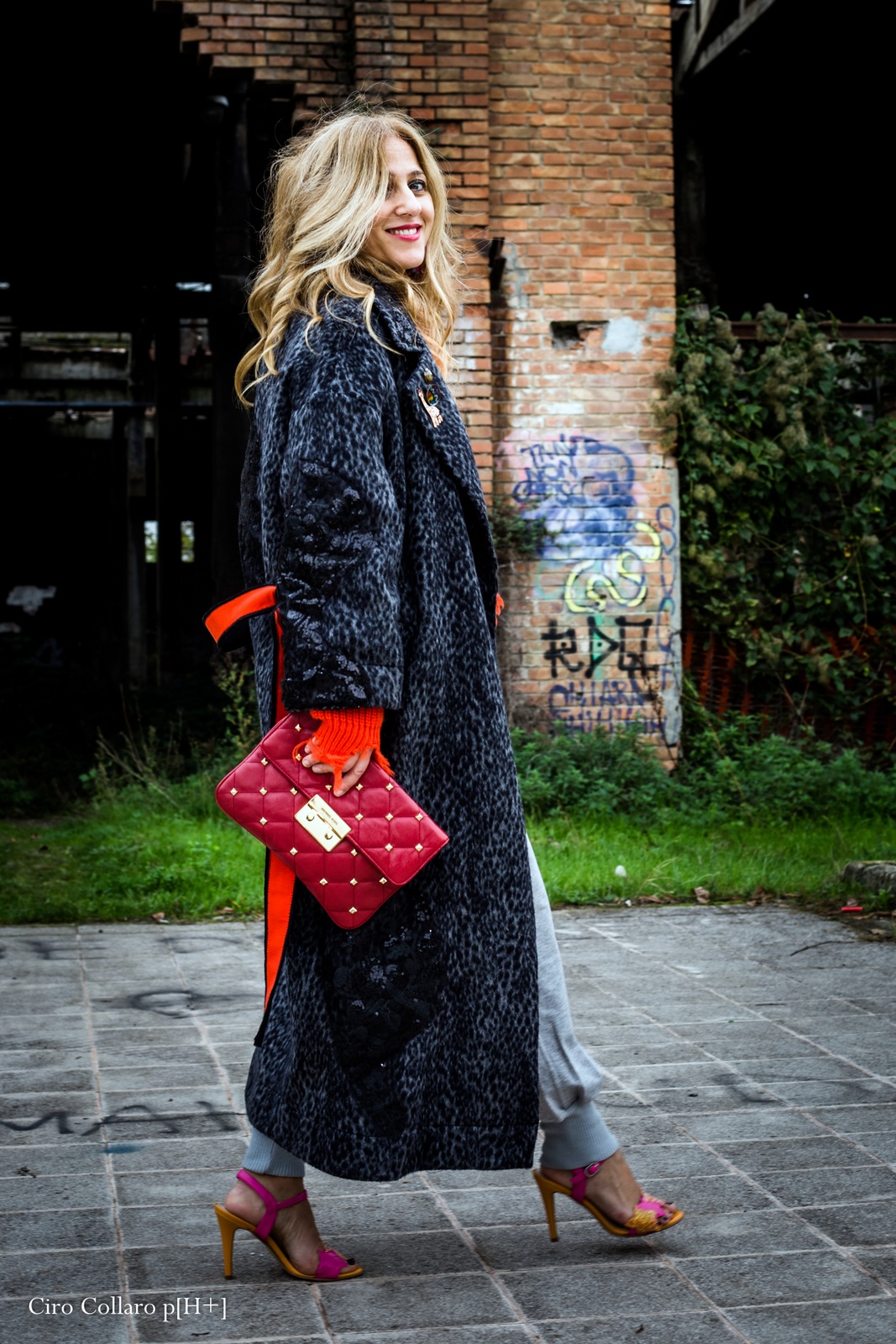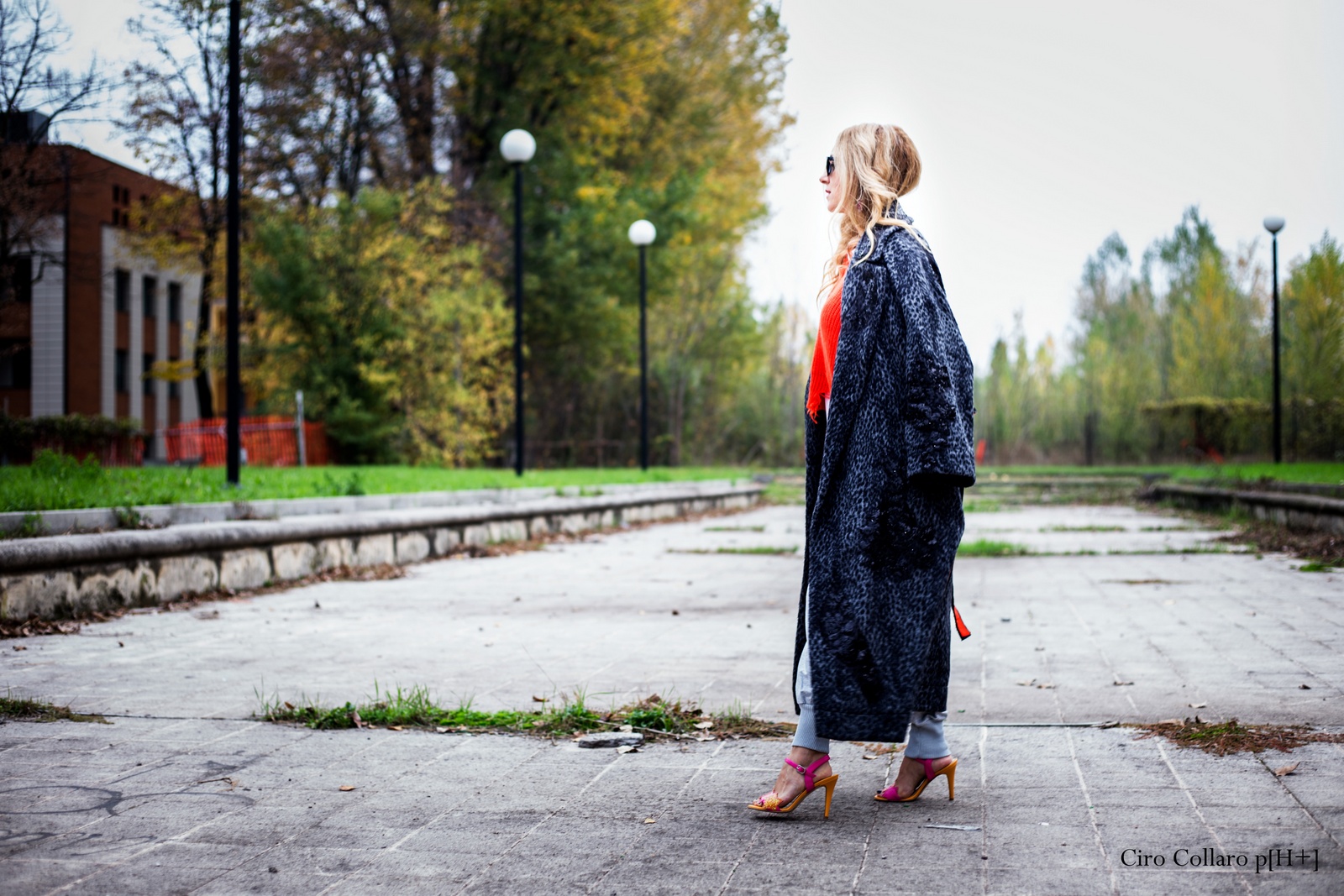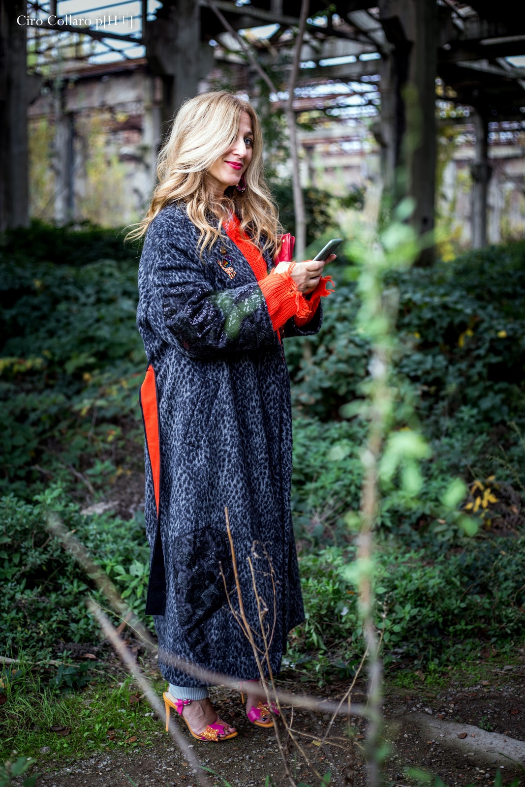 Questo è il mio cappotto ricreato da Nicoletta. Era un cappotto animalier grigio a vestaglia, quasi anonimo. Ora è diventato il mio. E mi rappresenta!
