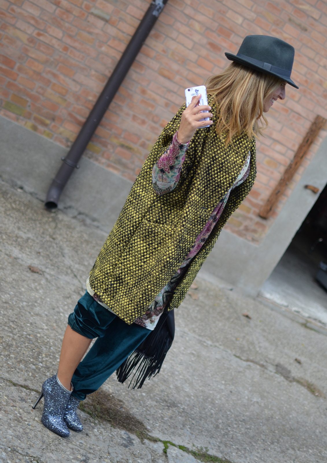 I love how you accessorised this outfit with the Hat, and those velvet trousers are awesome. You look fabulous