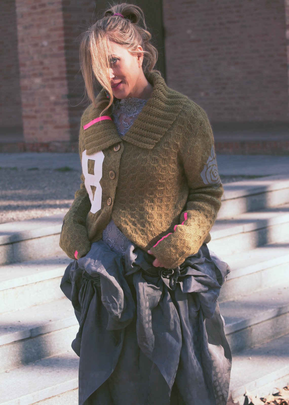 Un mix di volumi di incantevole eleganza. Un equilibrio imperfetto, dedicato a tutte quelle donne che sembrano sbarcate in bicicletta da un altro pianeta. Scordatevi il minimal. Dimenticate la sobrietà. Qui le forme geometriche ci sono e sono pure complicate e sofisticate. Sono creazioni che partono dal passato. Contenitori di storia, di emozioni, di passioni. Sono capi che hanno riempito delle vite, fatto battere cuori e ora come tributi preziosi sono stati ricreati e reinterpretati secondo lo stile di Lola.