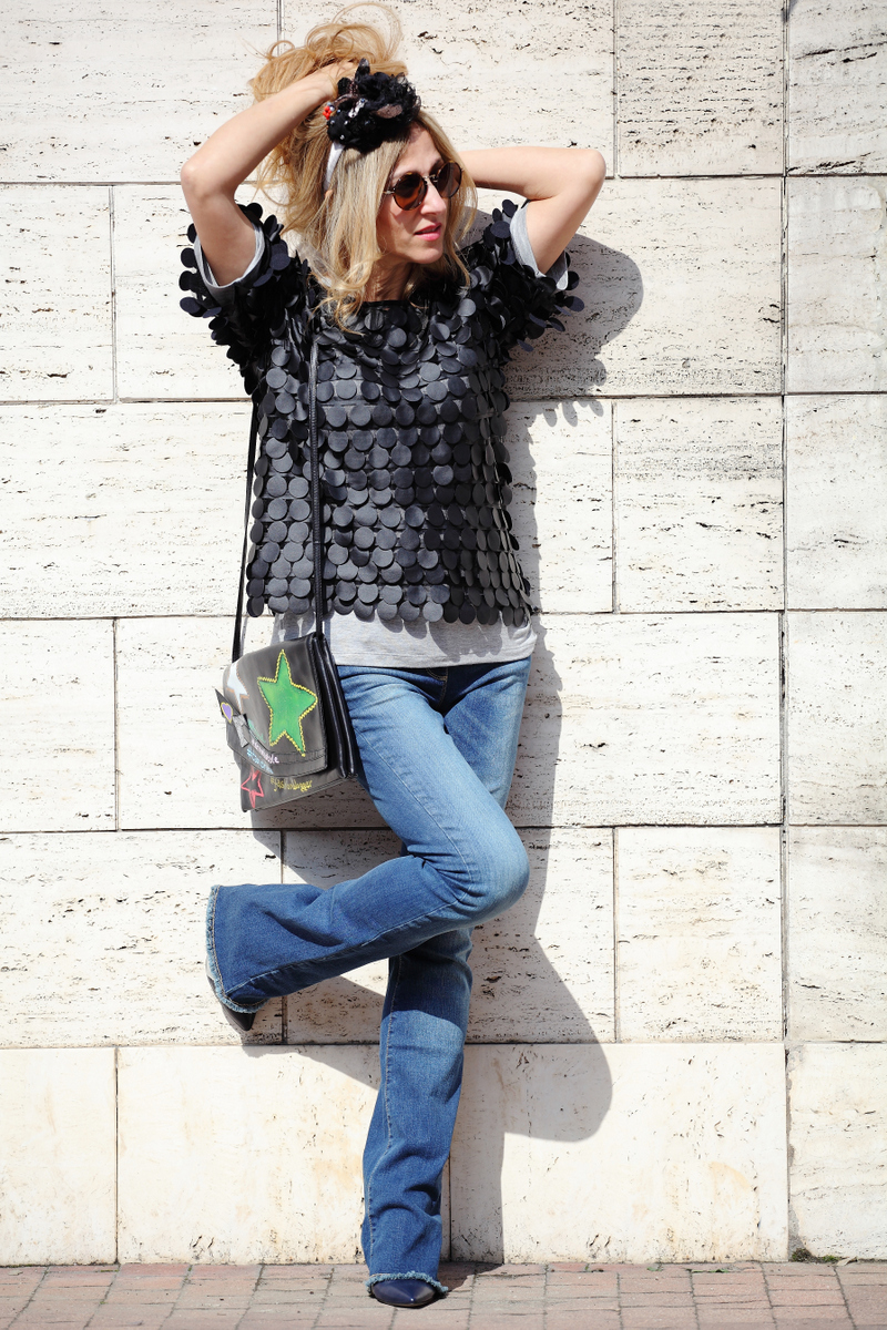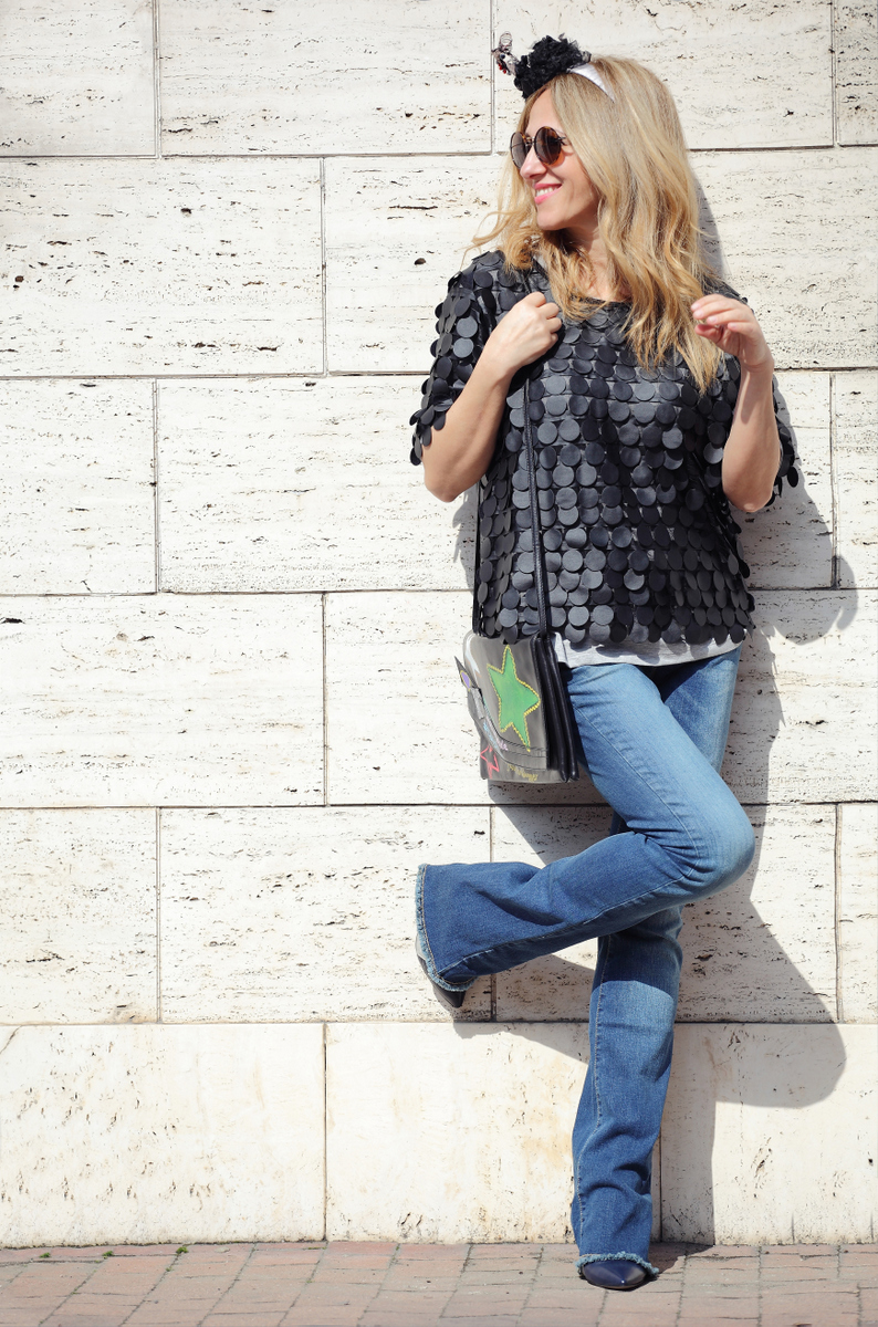Sono sicura che saresti perfettamente in grado di scrivere il seguito di Dr Jeckill e Mr Hide, hai una fantasia incredibile! Look pazzesco mi piace da morire come ti stanno questi jeans flare, dovresti metterli più spesso!