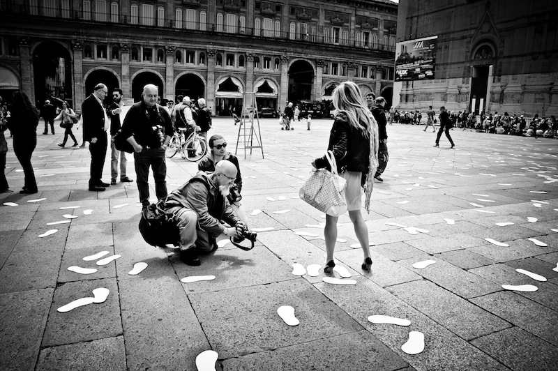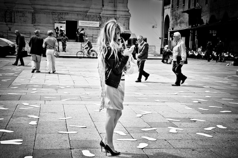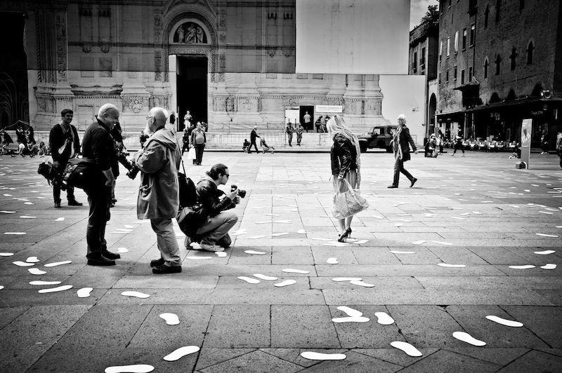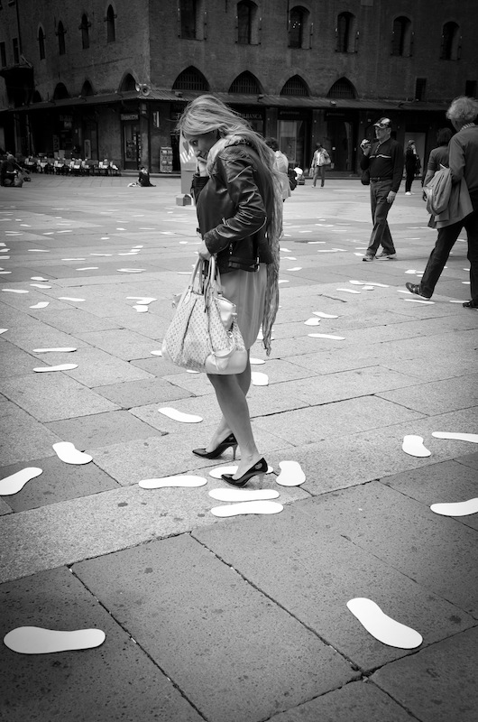 Nel frattempo complici le nostre risate mattutine in Piazza Maggiore mi fermano per farmi alcuni scatti mentre cammino con indosso le mie nuove decolté Borbonese.