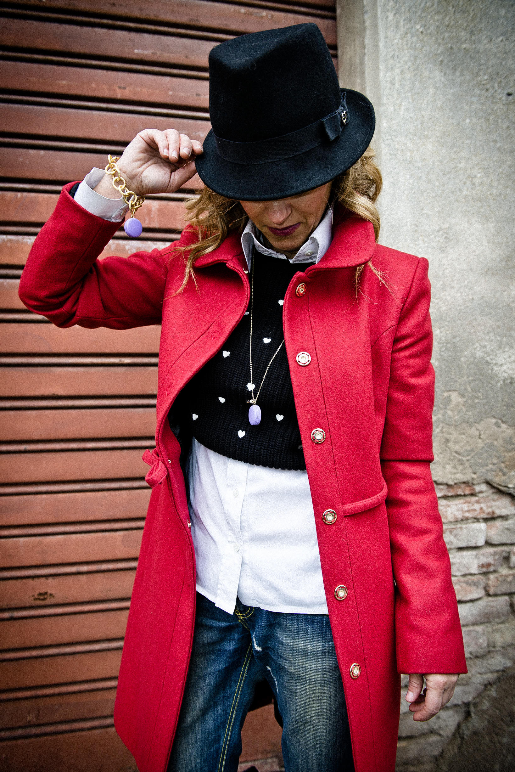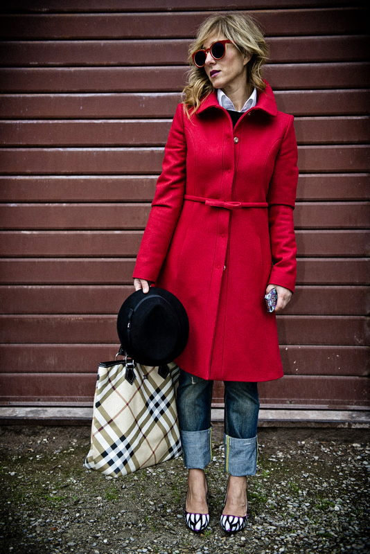 Giornata strategica per ricordare ai posteri il mio nuovo cappotto rosso ciliegia, tinta di grande impatto che risalta sotto questo cielo coltre appesantito da cumuli di nuvole cadute sulla terra: nebbia. Ve lo ricordate QUI nella mia preview dello scarto?