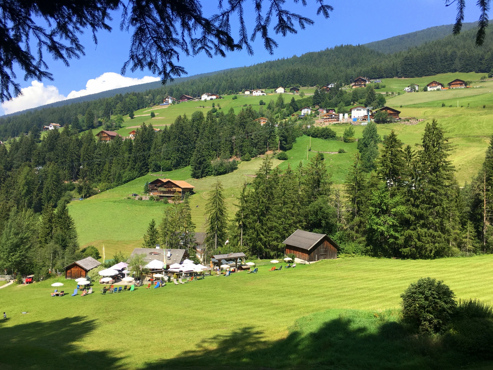 Discesa da San Giacomo verso Val d’Anna meta escursionistica per bambini con percorso di 3 ore al parco avventura.