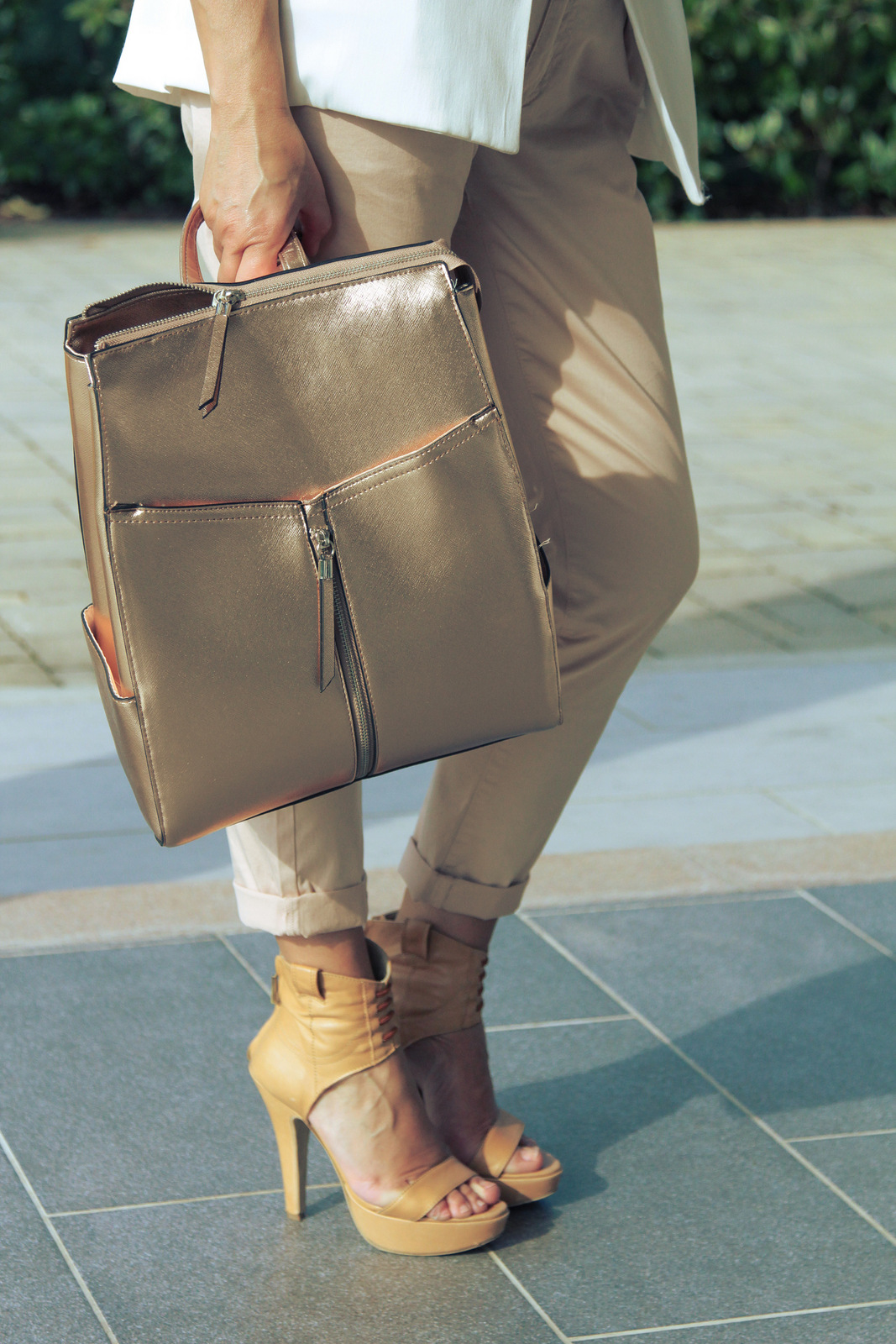 Sempre molto chic la scelta dei colori chiari come il bianco e beige! Amo il tocco del cappello è mi piace tanto lo zainetto! Baci Elisabetta