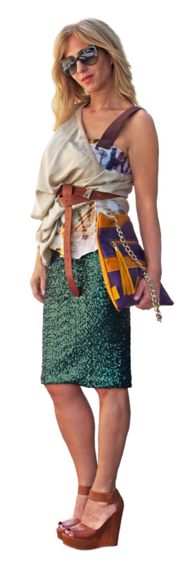 Coprispalle+ midiskirt in paiellettes+shoes+cintura Liviana Conti By Show Room Orlando Vasini