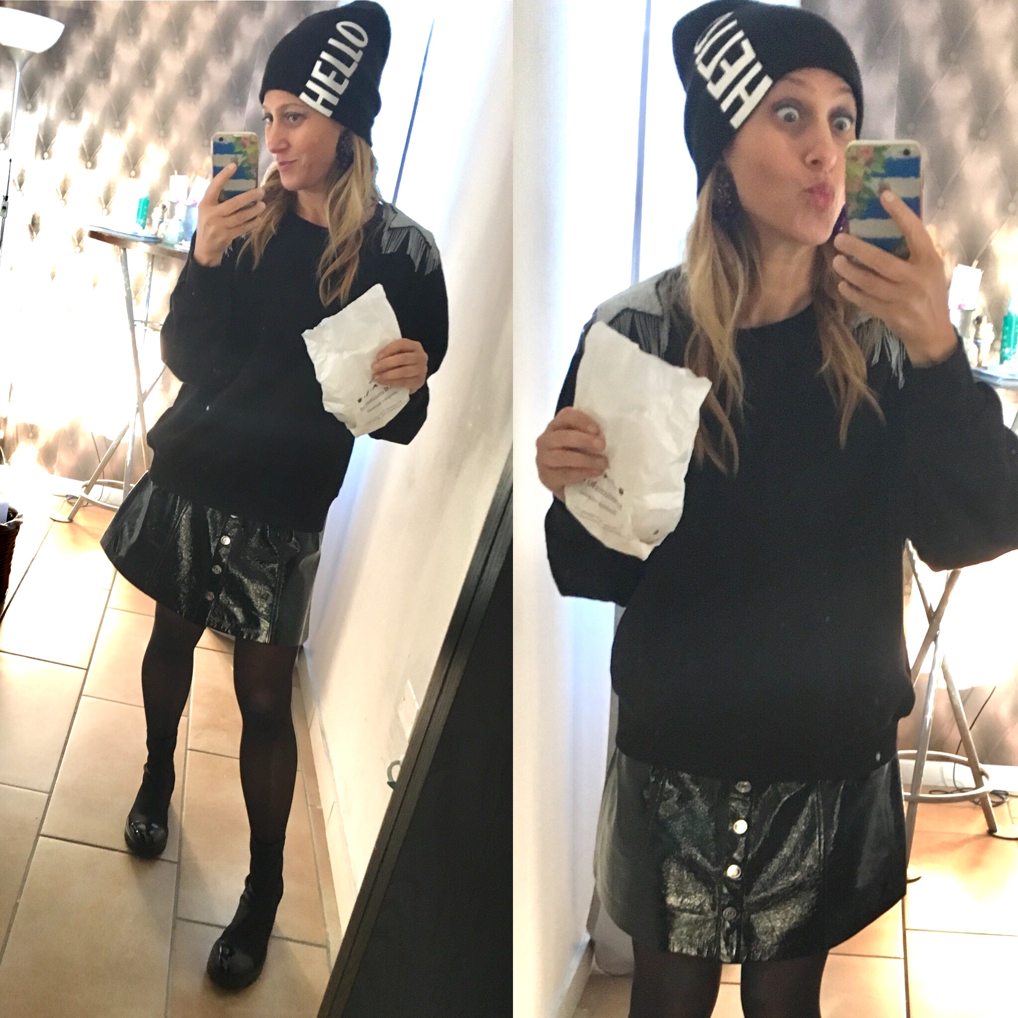 Poi ho messo anche le calze e la mini in vinile trash di @stradivarius … e la felpa con le spalline silver glitterate di @mango … ecco il mio look quasi trash stile anni ‘80 … le calze fino a sera si bucheranno da sole!
