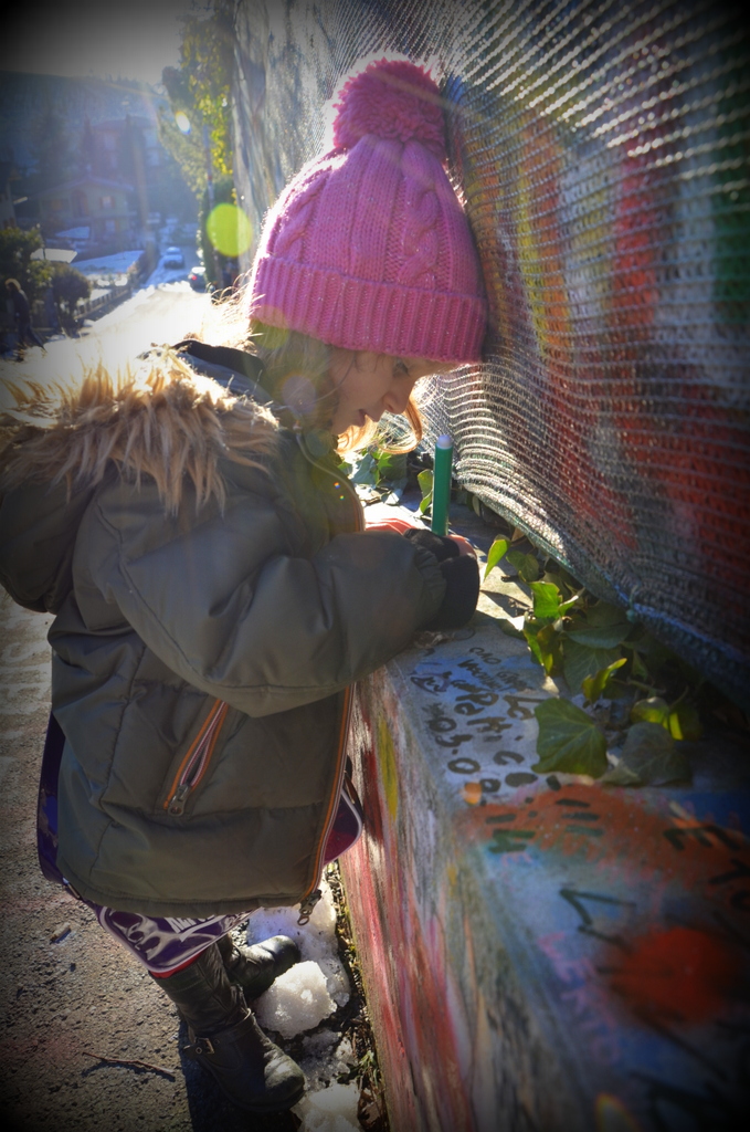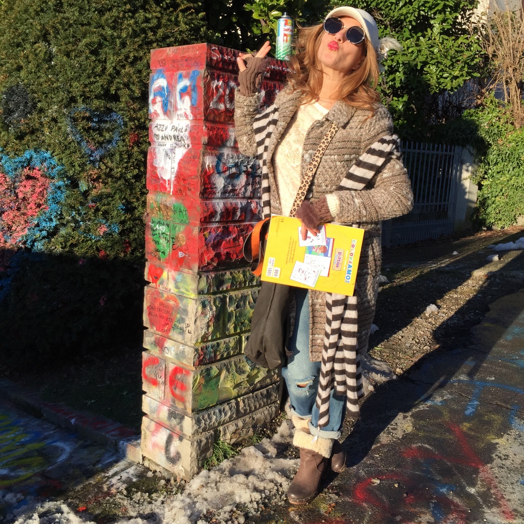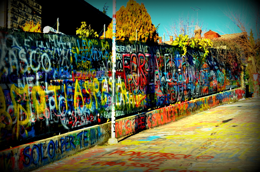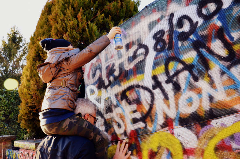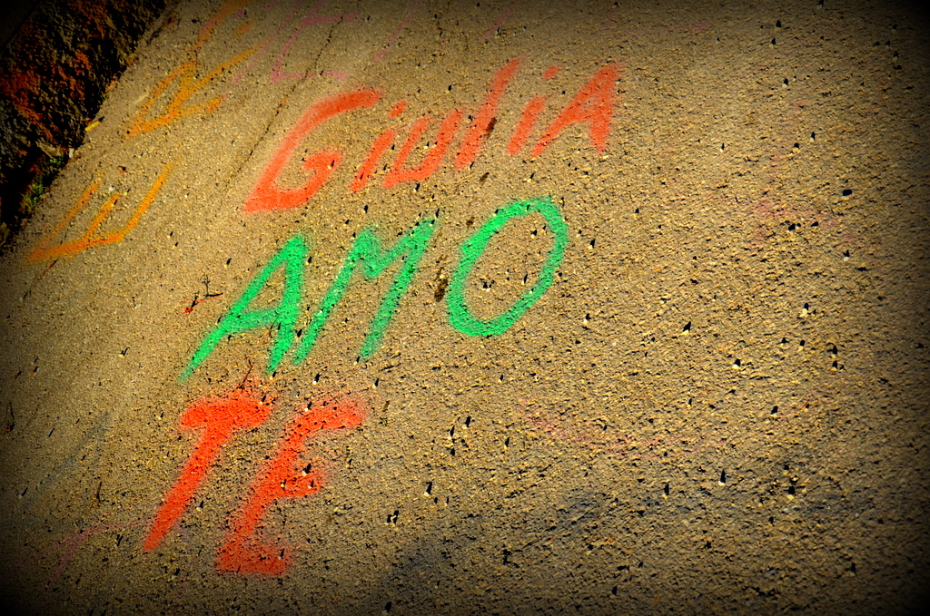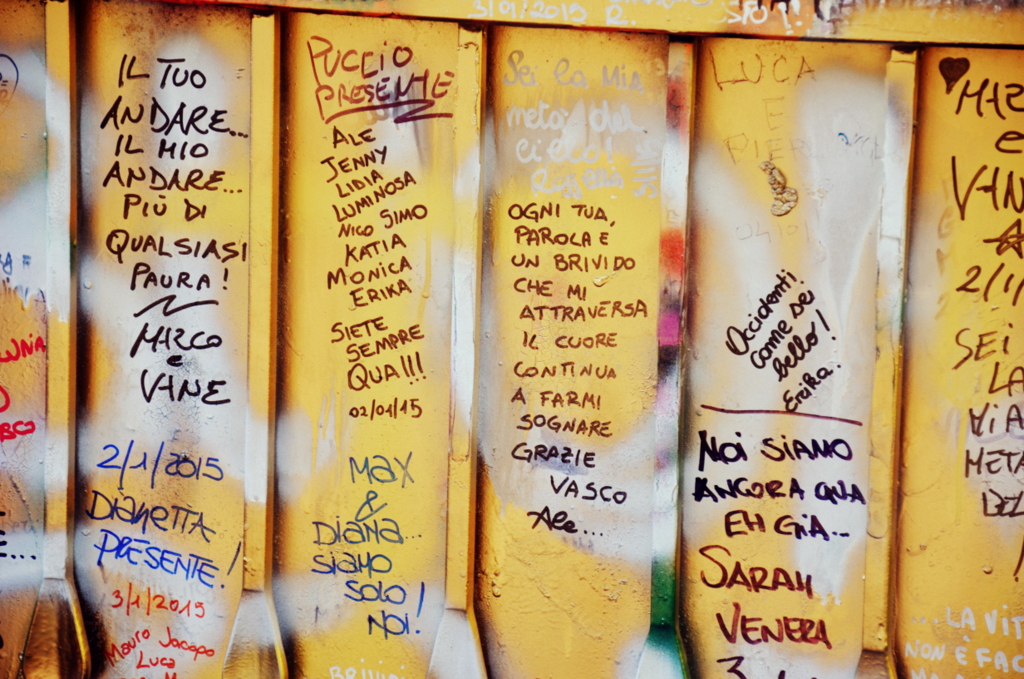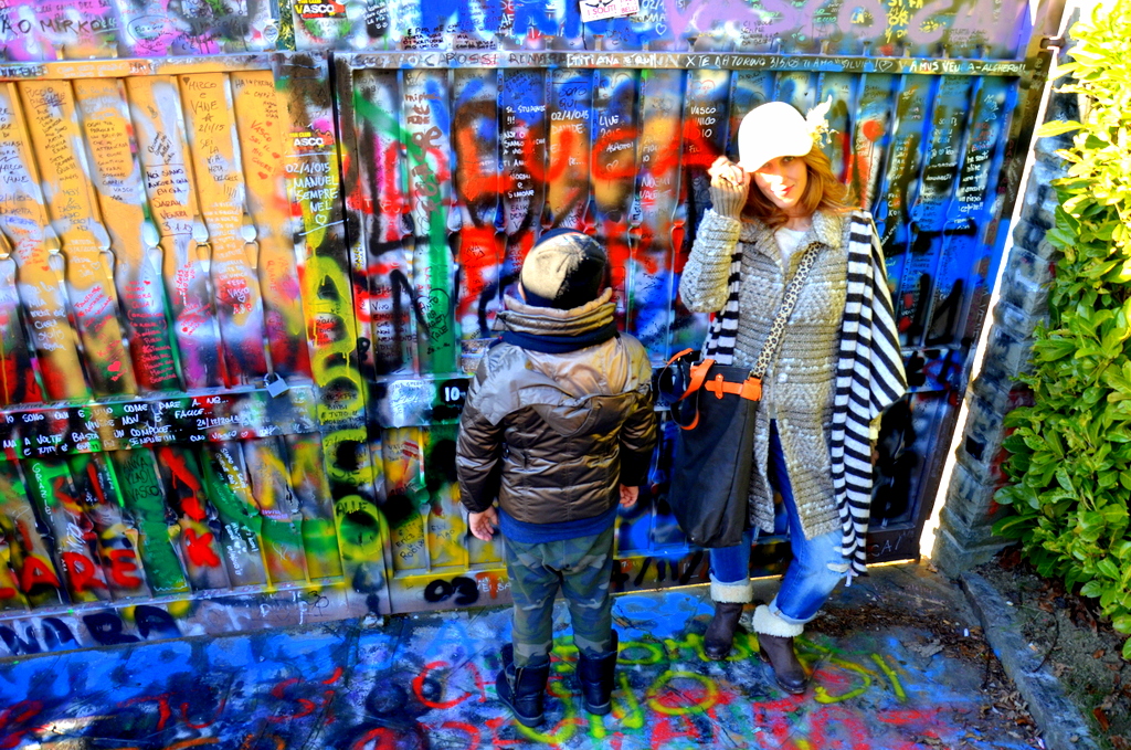 I miei bimbi hanno voluto anche loro firmare la loro dedica! Abbiamo faticato a trovare uno strato libero dove poter spruzzare lettere di poesie e di canzoni di Vasco.