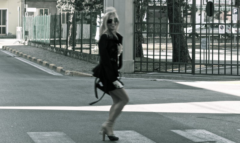 In questo capitolo, un altro outfit presentato in anteprima veloce, da vedere e copiare mentre si corre. Un abito fluido per un stile serio ma poco chic senza rinunciare ai boots bicolore DellaPaolini, guardati, ammirati, spiati e paparazzati.