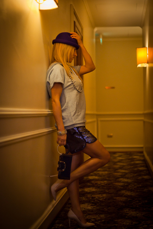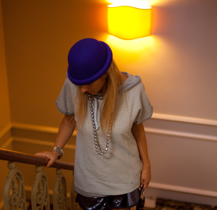 Stai molto bene. Cappello e shorts sono strepitosi. L’accostamento felpa /pailletes ci piace tantissimo! 🙂