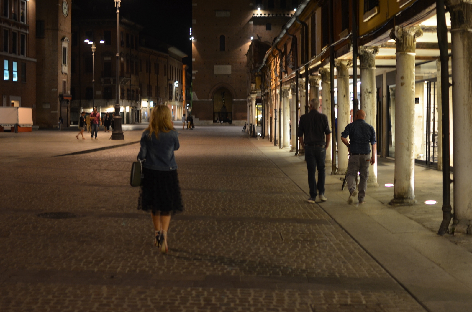 Davanti ad uno splendido Castello Estense, illuminato dopo l’acquazzone, per una cena elegante e raffinata all’Oca Giuliva, a parlare di Frida, Rivoluzione, Win Wenders, Antonioni, Savonarola e tante risate che solo persone speciali sanno ispirare in una sera d’Agosto.