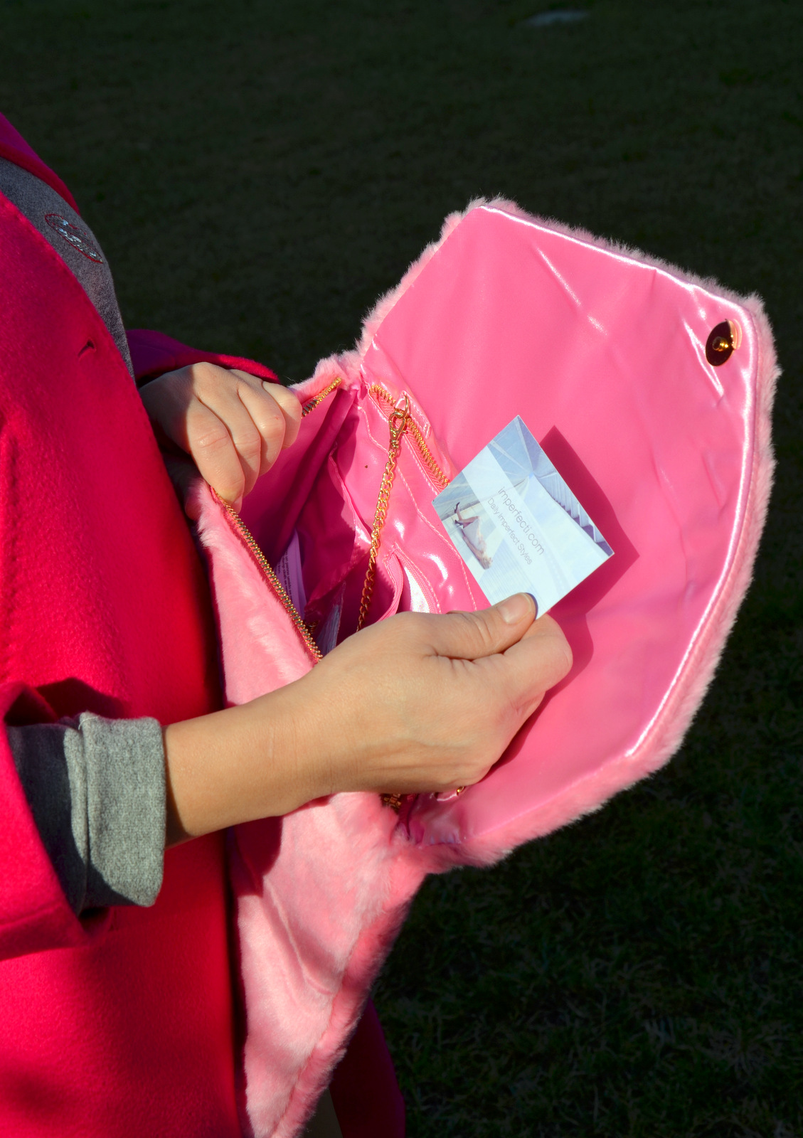 L’ho abbinato allo short Origami di Zara e ad una felpa con le labbra di paiellettes, al cappello di Moschino e ad una clutch rosa tutta pelosa!