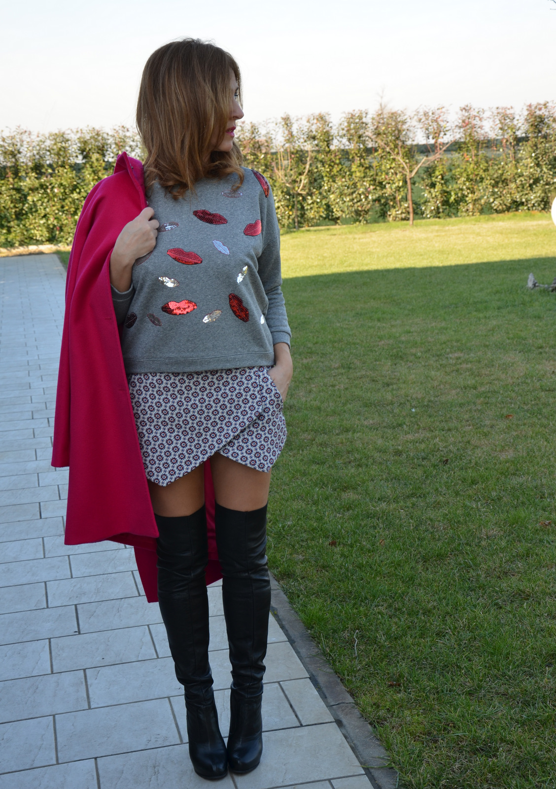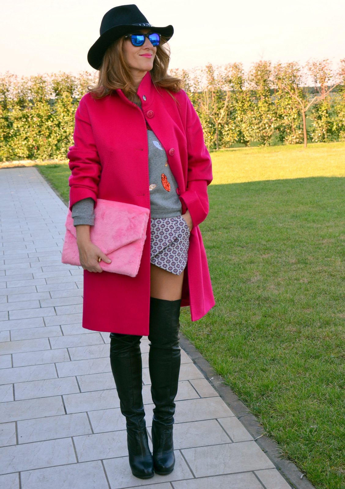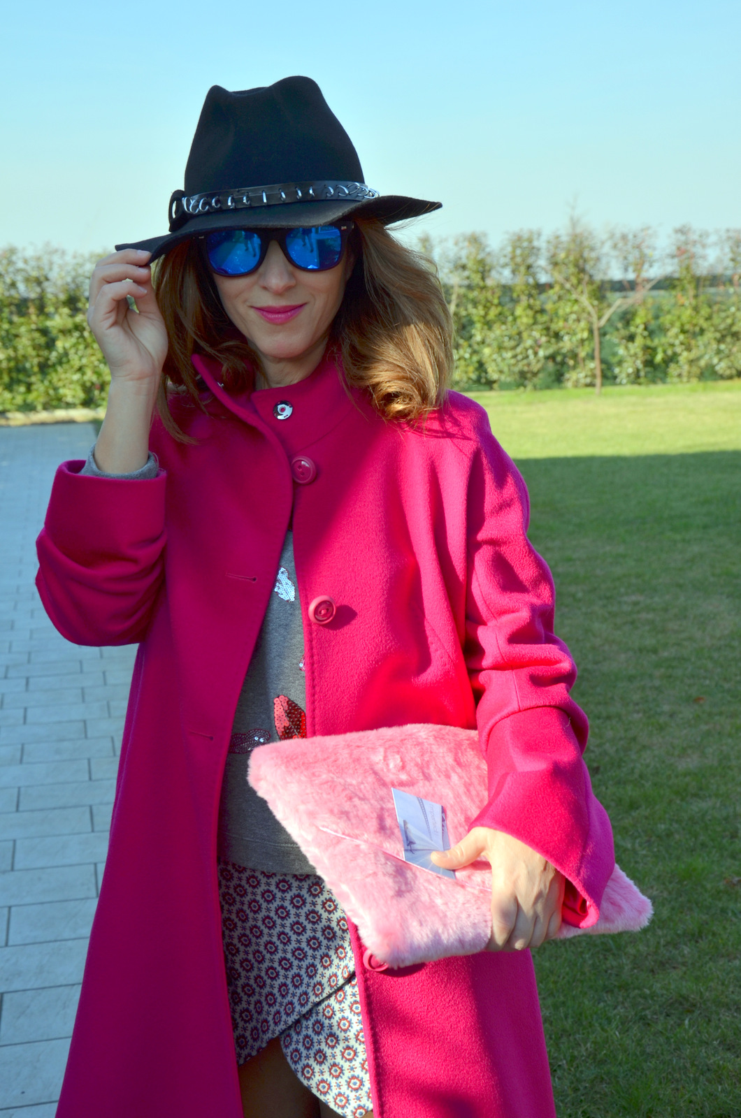 Ma che meraviglia un cappotto fucsia non ci avevo mai pensato, ma invece ci vuole proprio per dare il colore e la carica di cui abbiamo bisogno in inverno. Stupendo il tuo abbinamento e si’ anche se la gonna di Zara potrebbe sembrare un po’ corta con il cappotto lungo che copre, non abbiamo nessun imbarazzo! Baci Elisabetta