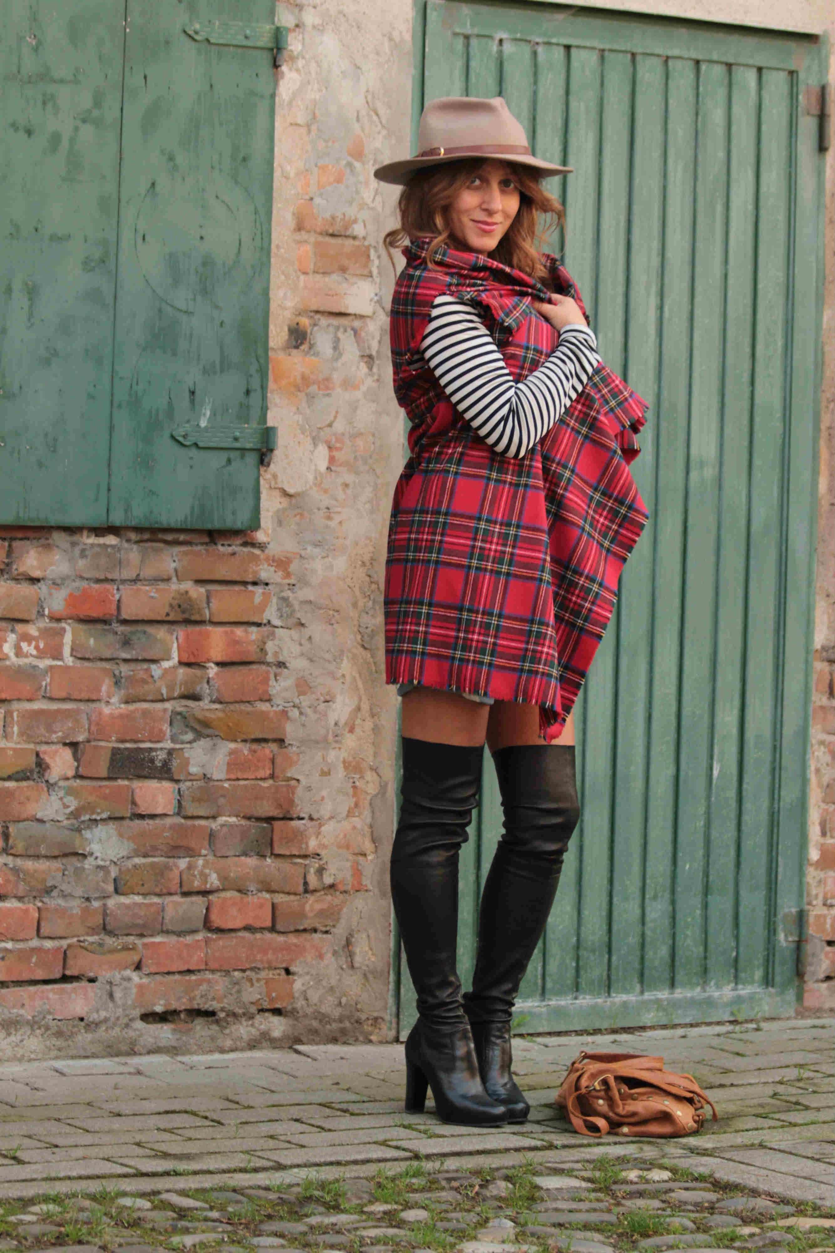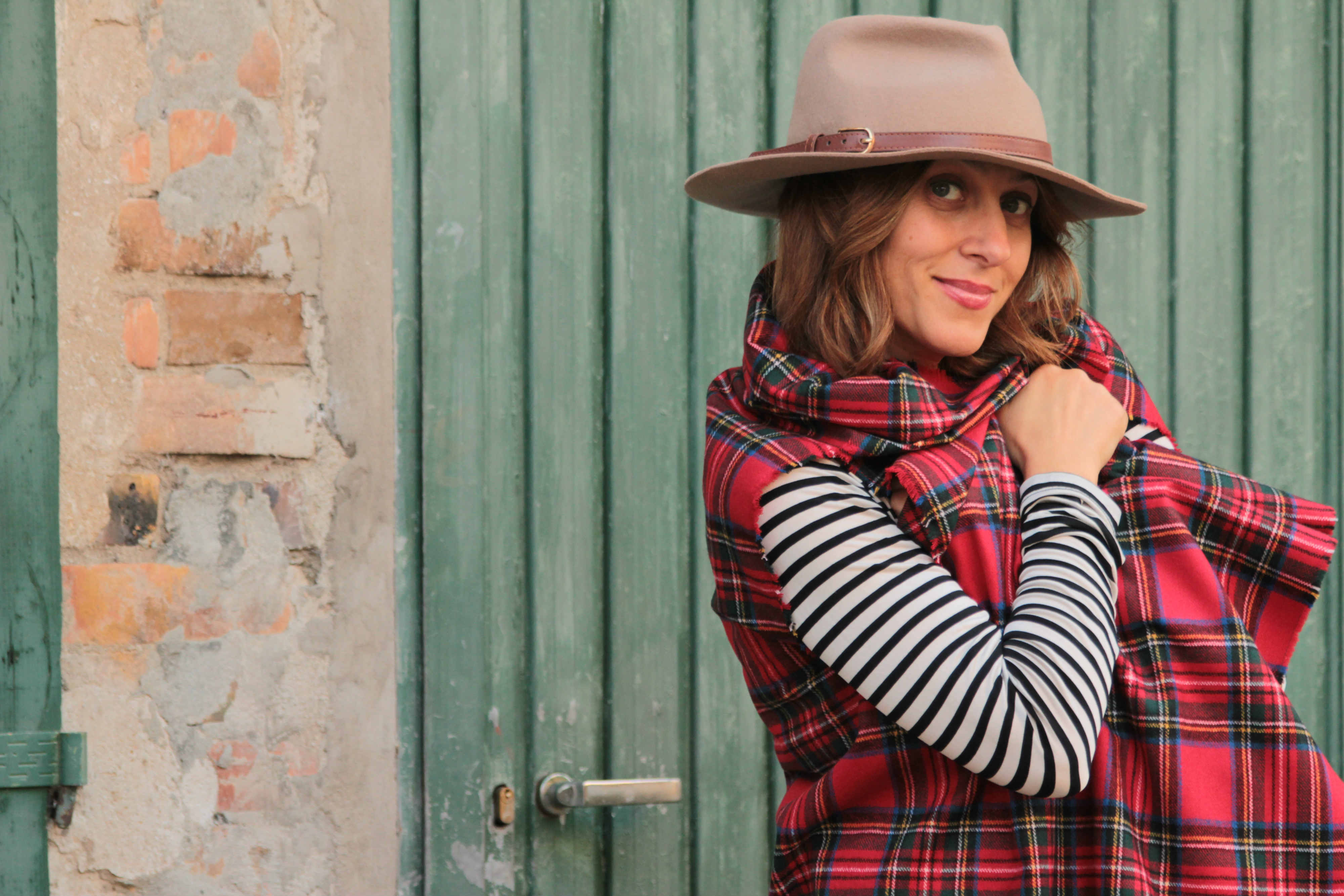 Che bello questo poncho. Mi piace molto il tartan, tornato nuovamente di moda negli ultimi tempi, e del mio colore preferito poi 🙂