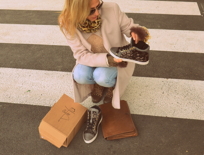 Le sneakers sono bellissime, ma ad attrarre la mia attenzione è stato il tuo cappotto insieme a quegli stivaletti stupendi, inoltre il tocco leopardato del paraorecchi…hai fatto bene a fermarti sulle strisce, comunque fermavi il traffico perché il look era stupendo davvero ! Un bacione