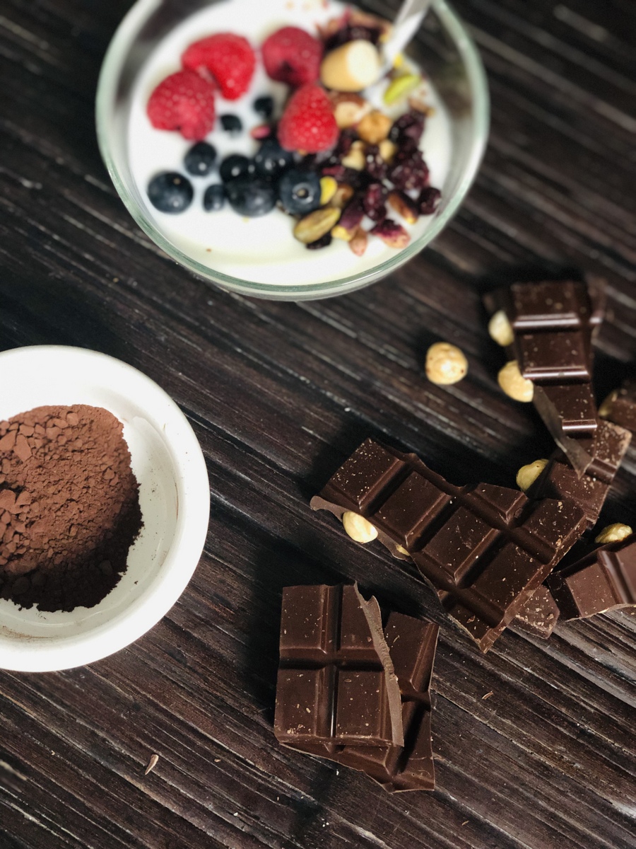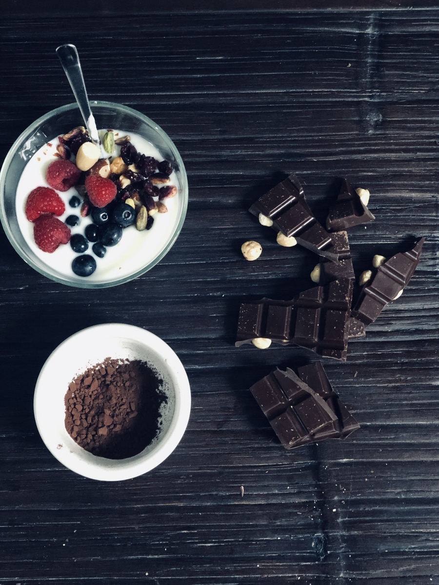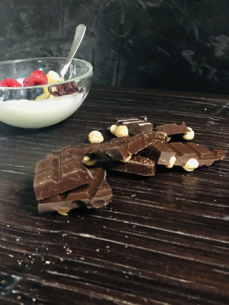 Nocciole tostate e nocciole intere mescolate in una poesia di fondente senza zucchero. Dolcificato con il maltilolo che è un dolcificante naturale che si ottiene dal maltosio che è simile allo zucchero da tavolo ma meno calorico. Una delizia rara, ma vi prego di non abusarne, lasciatene una scorta per i vostri momenti di depressione, vi aiuterà a stare subito meglio. Io l’ho frantumata in tanti pezzetti, adagiata in una ciotola con dentro del cacao amaro. Il tempo di scattare una foto che è sparita all’improvviso da sotto il mio obiettivo. Volatilizzata…ecco questo è un problema da risolvere!