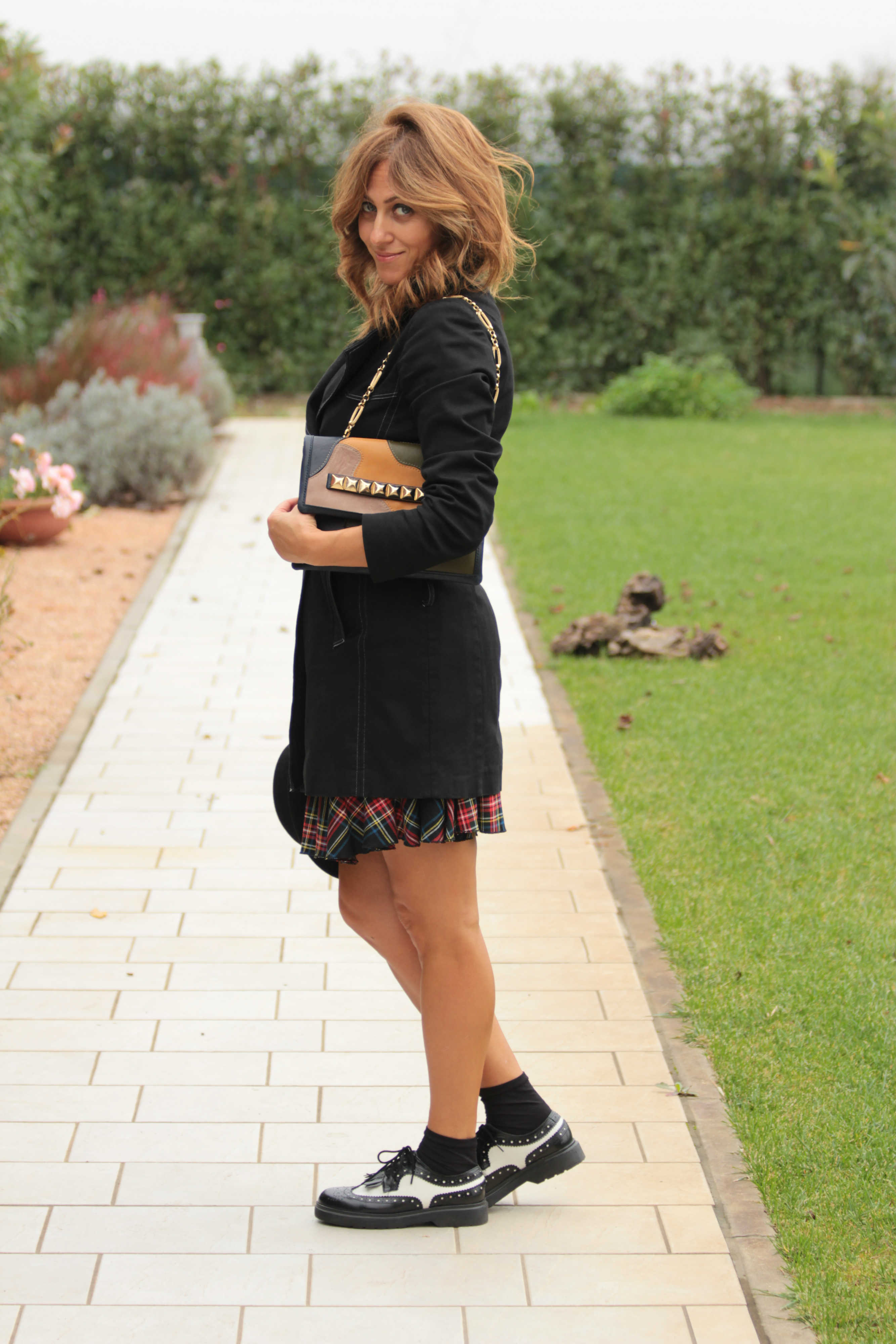 Bellissimo questo look. Mi piace molto l’abbinamento delle stringate con la gonna scozzese, molto english!!!