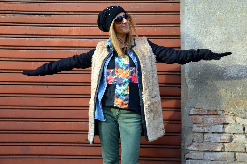 Ci sono dei giorni in cui mi va di vestirmi semplice ed easy ed altri in cui mi piace azzardare combinazioni pazzesche. Oggi proviamo il brivido del brio grazie ad una tee flower style che già di per se veste moltissimo abbinata a due varianti di denim, il pants verde e la camicia in blu. E il cappottino vi piace? Fuoriuscito dai saldi di Bounty Concept Store, lo store di Cinzia Paolini ve lo ricordate protagonista degli outfits di Ottobre che potete riguardare QUI.
