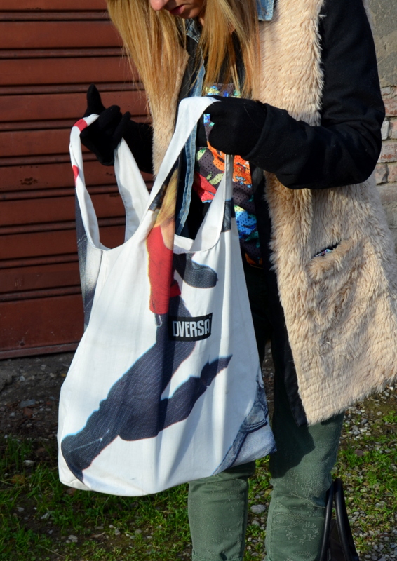 Il pezzo forte è il cappotto, bellissimo! Mi piace molto anche la tee. La borsa invece non tanto, troppo simile a una di quelle borse che ti danno alla Coop per fare la spesa : ))