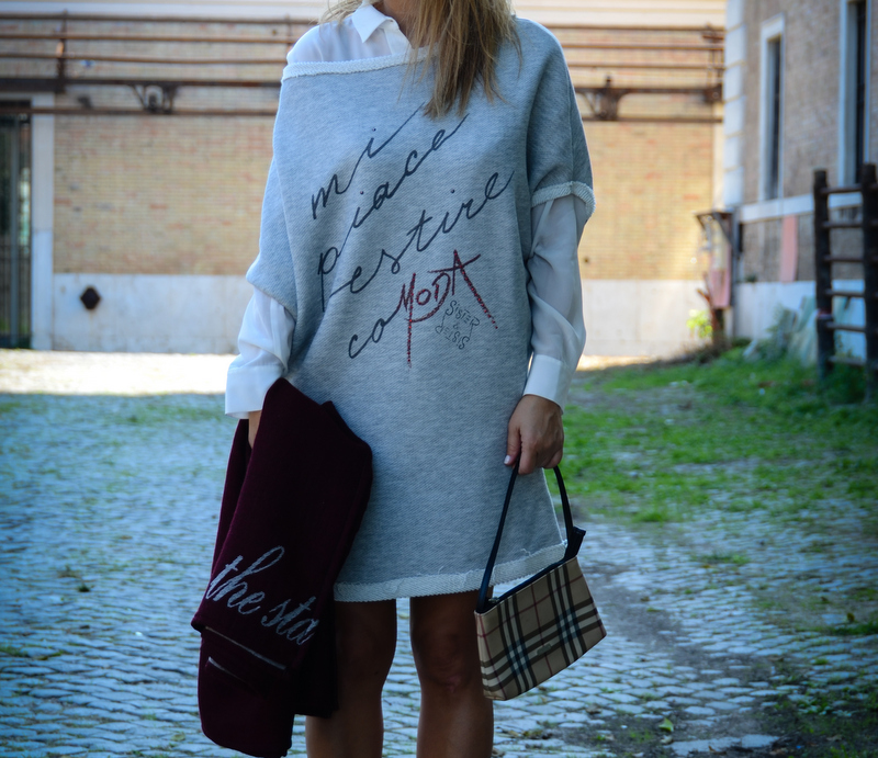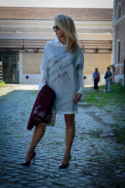 Il vestito-felpa è una vera novità per me! Molto bello abbinato con i tacchi e di sicuro ti imiterò questo look così originale.