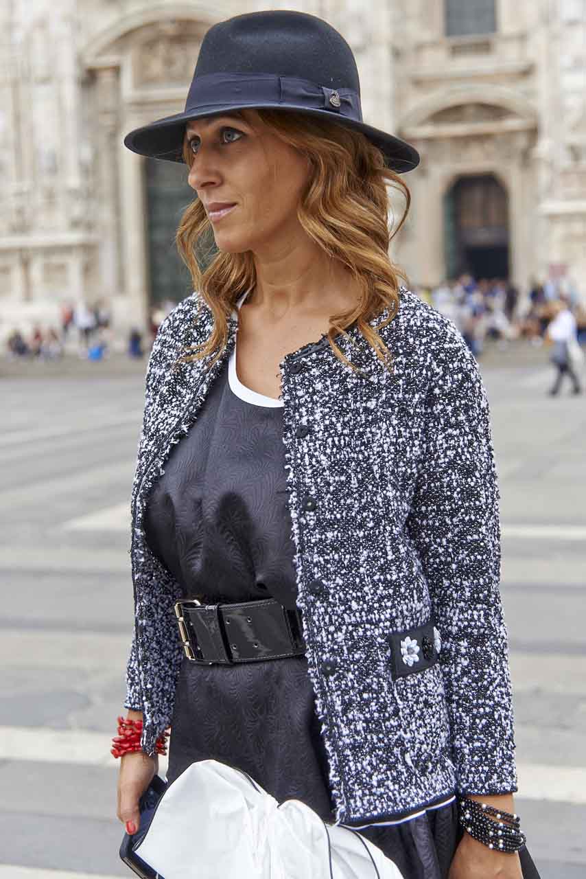 Quando la indossiamo per certi aspetti potremmo sembrare delle “signore zie” e allora dopo averla provata la richiudiamo nell’armadio. Bene io la trovo irresistibile proprio perché cerco di sdrammatizzarla e renderla versatile. Come i gatti la giacca tipo Chanel ha 7 vite.