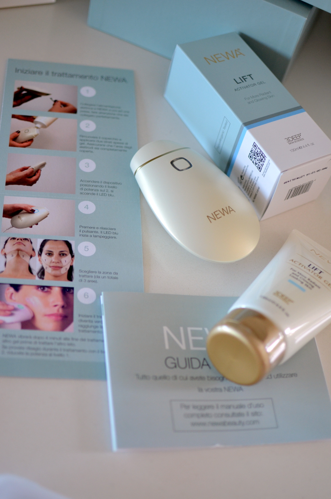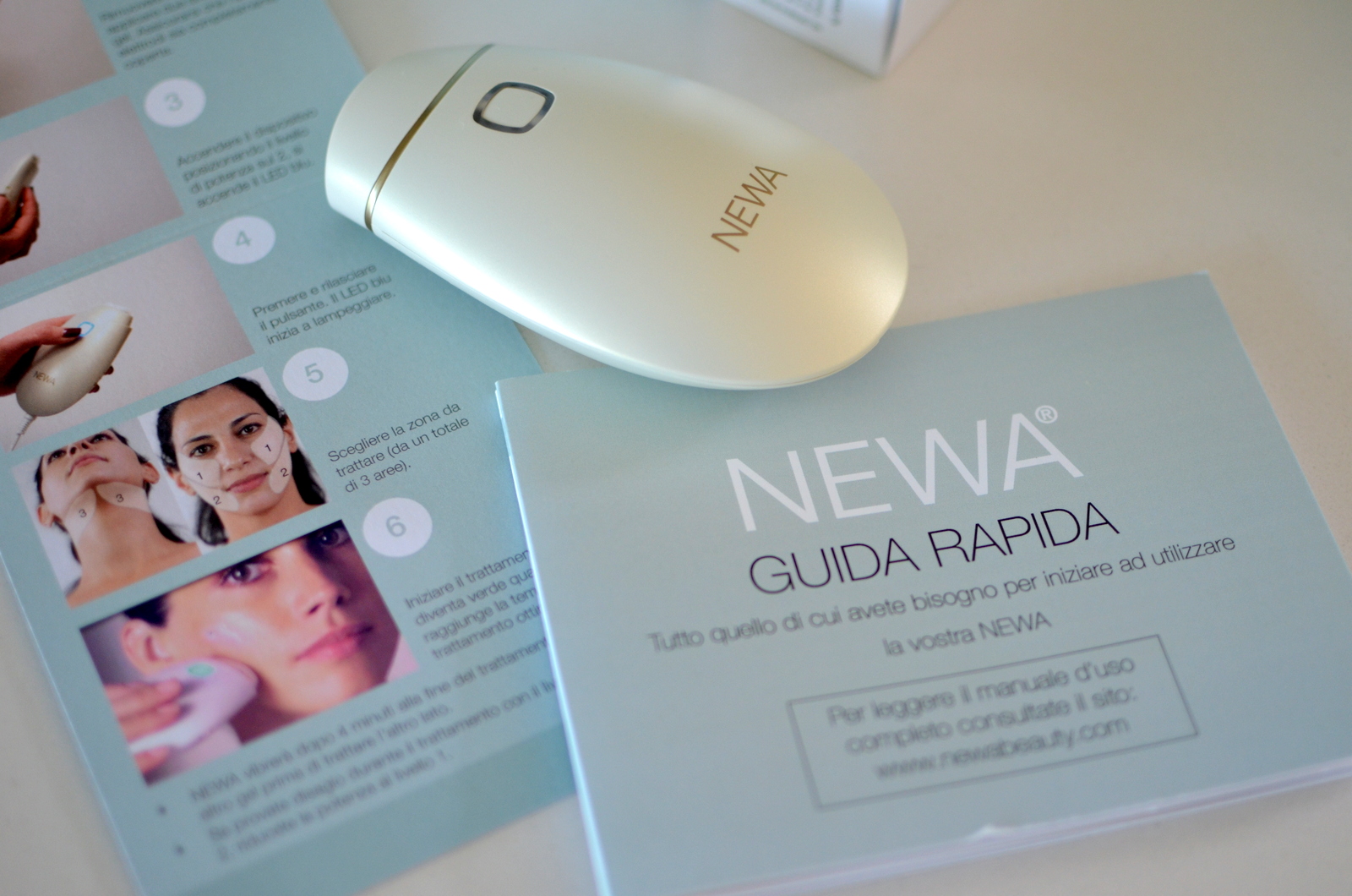 Ecco perché questo dispositivo NEWA mi incuriosisce moltissimo. Usato regolarmente (2 volte a settimane per almeno 4 minuti nelle zone interessate mentre per iniziare si può partire anche con 5 usi a settimana per 12 settimane), contribuisce a ridurre le rughe, rassodare la pelle del viso e del collo ridandoci luminosità ed elasticità attraverso la riproduzione del collagene.