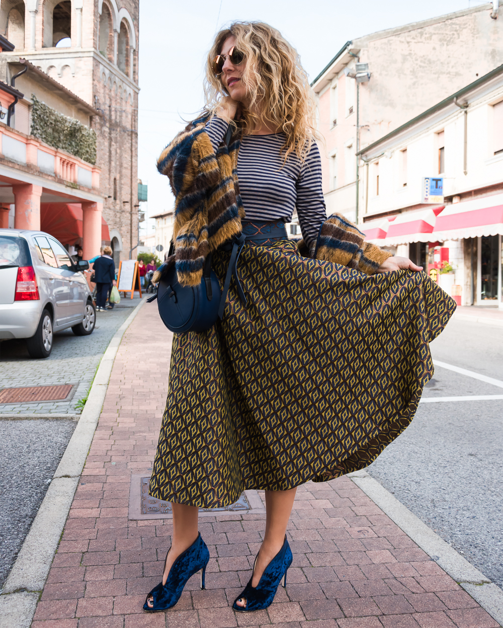 Vale la pensa barattare un po’ dei nostri look scontati e anonimi per un stile dinamico e contemporaneo? I miei Open Toe sono deliziosi sotto il gonnellone a ruota.