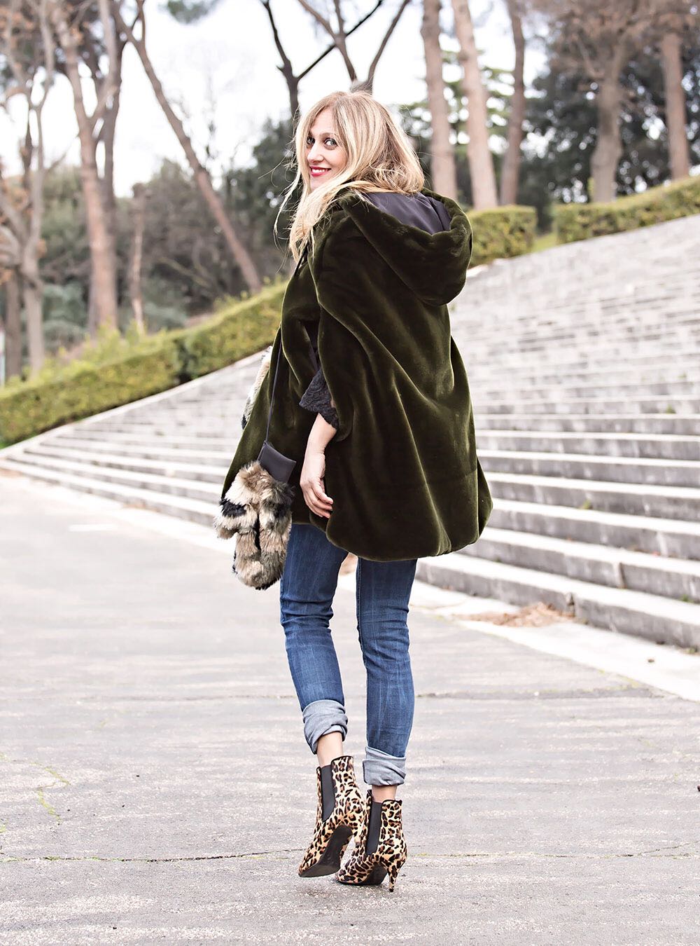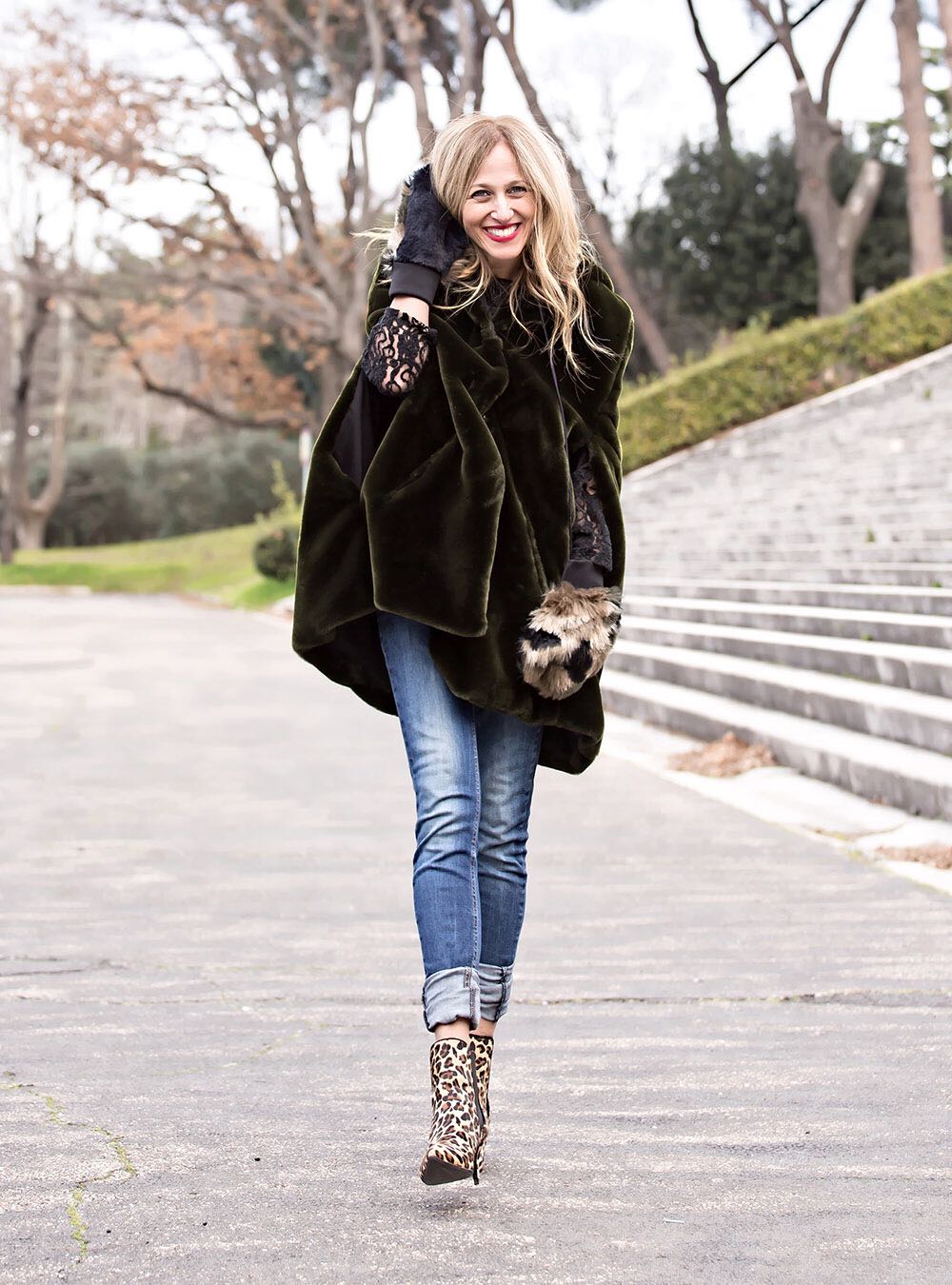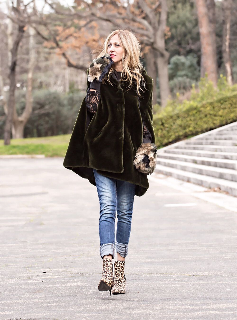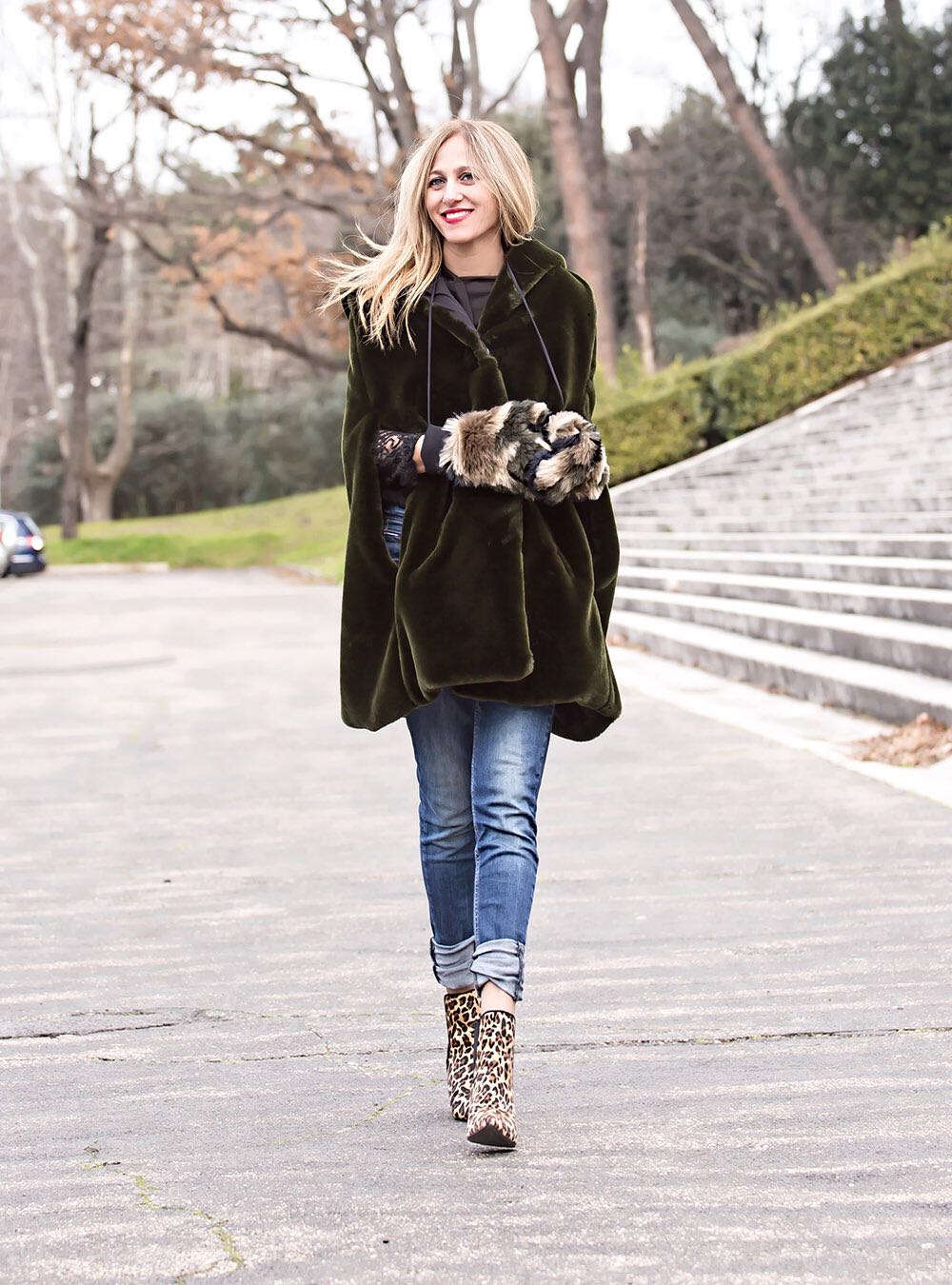 Adoro la mantella di ecopelliccia e quegli stivaletti!