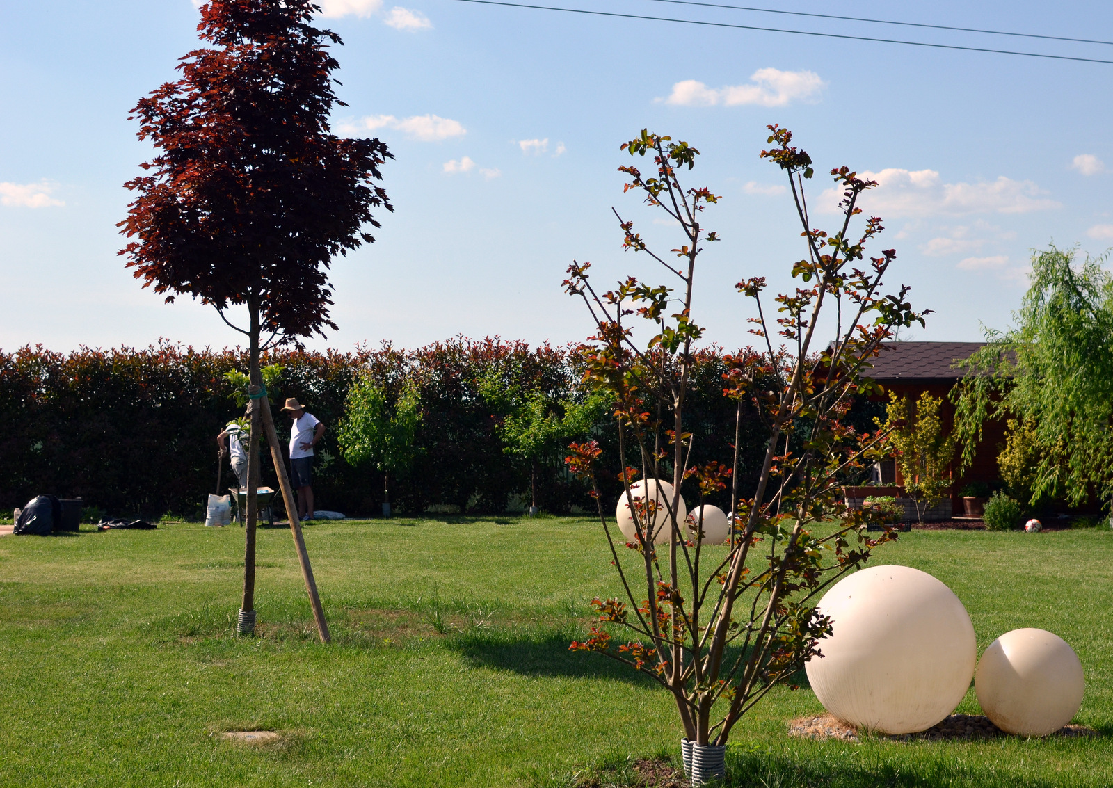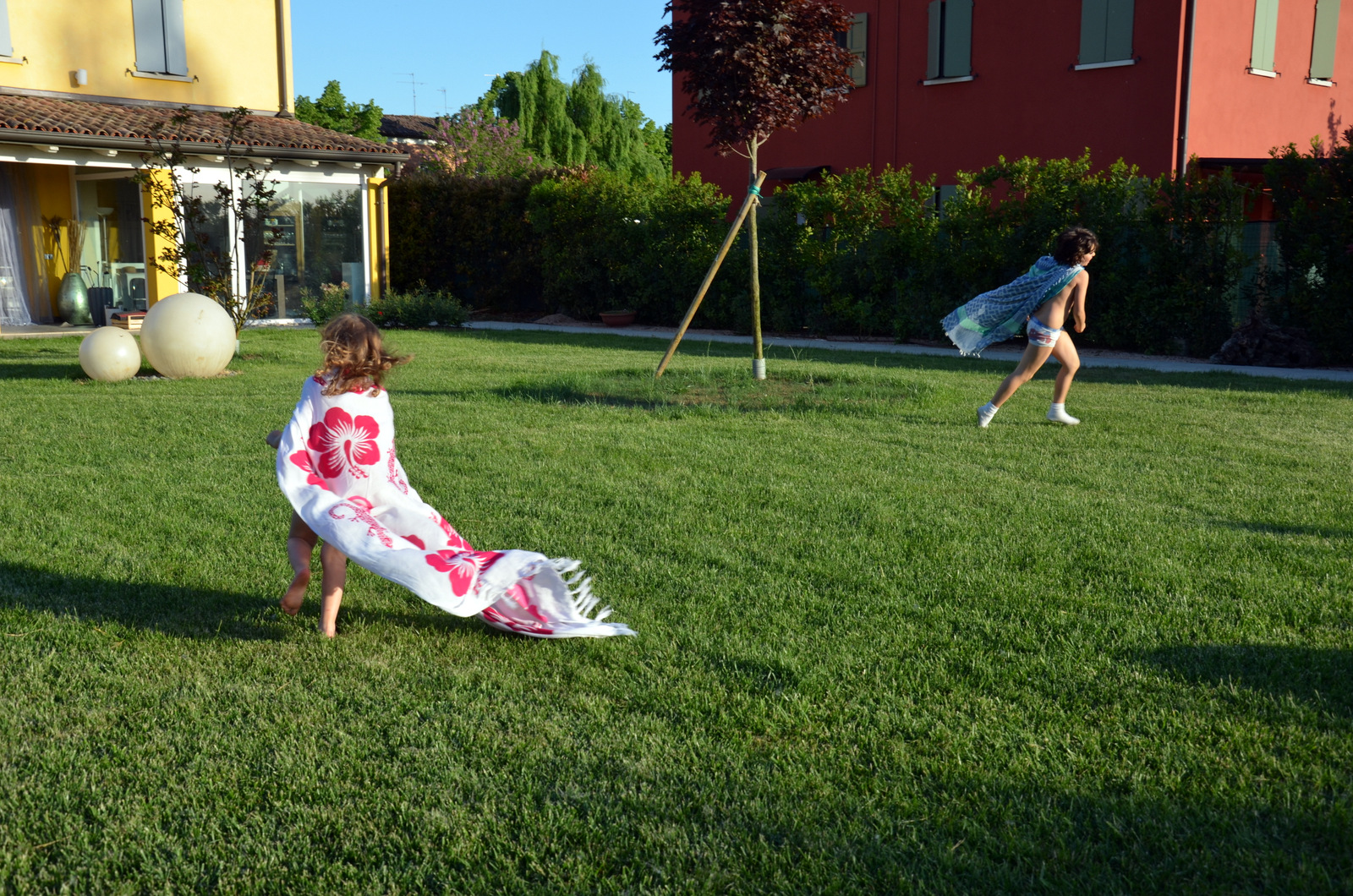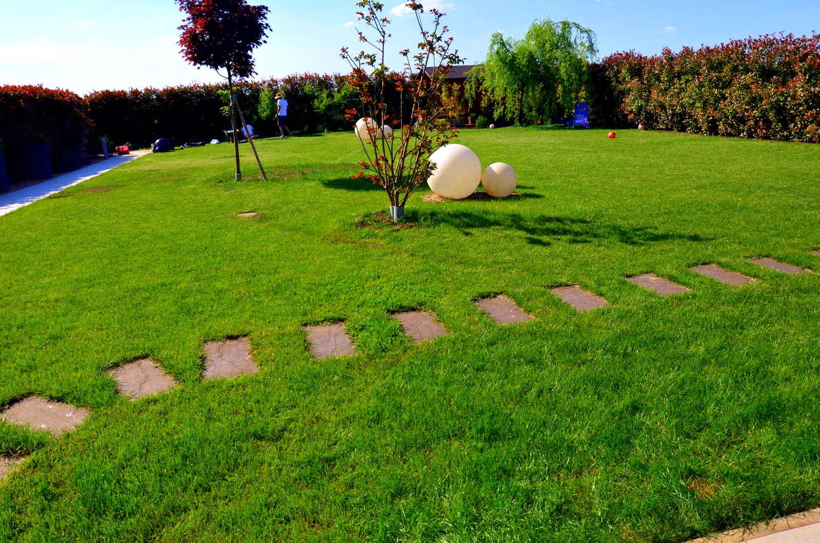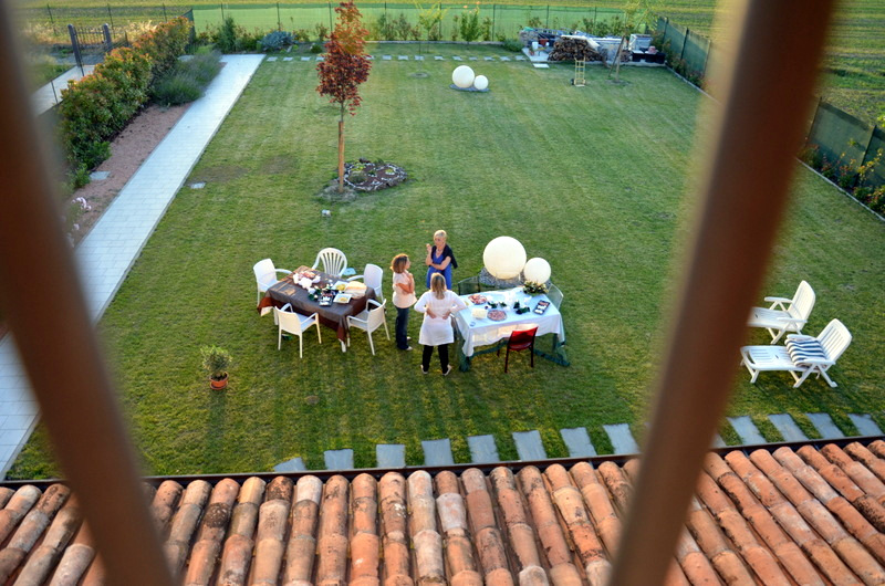 Impegnativo mantenere un giardino così grande ma sicuramente appagante. Divertente nei mesi da Aprile a Settembre con bimbi che giocano, solarium, fiori che spuntano, frutti di stagione senza additivi, tramonti meravigliosi che fanno da cornice a cene in compagnia, tra il profumo di gelsomini, gerani, roselline, basilico, lavanda, ginestre azalee, rododendro, ortensie, oleandri, alloro. Certo vivendo in pianura padana non posso sperare di vedere fiorire i frangipane sotto casa ma fiori e siepi sempreverdi sono una scelta obbligata.