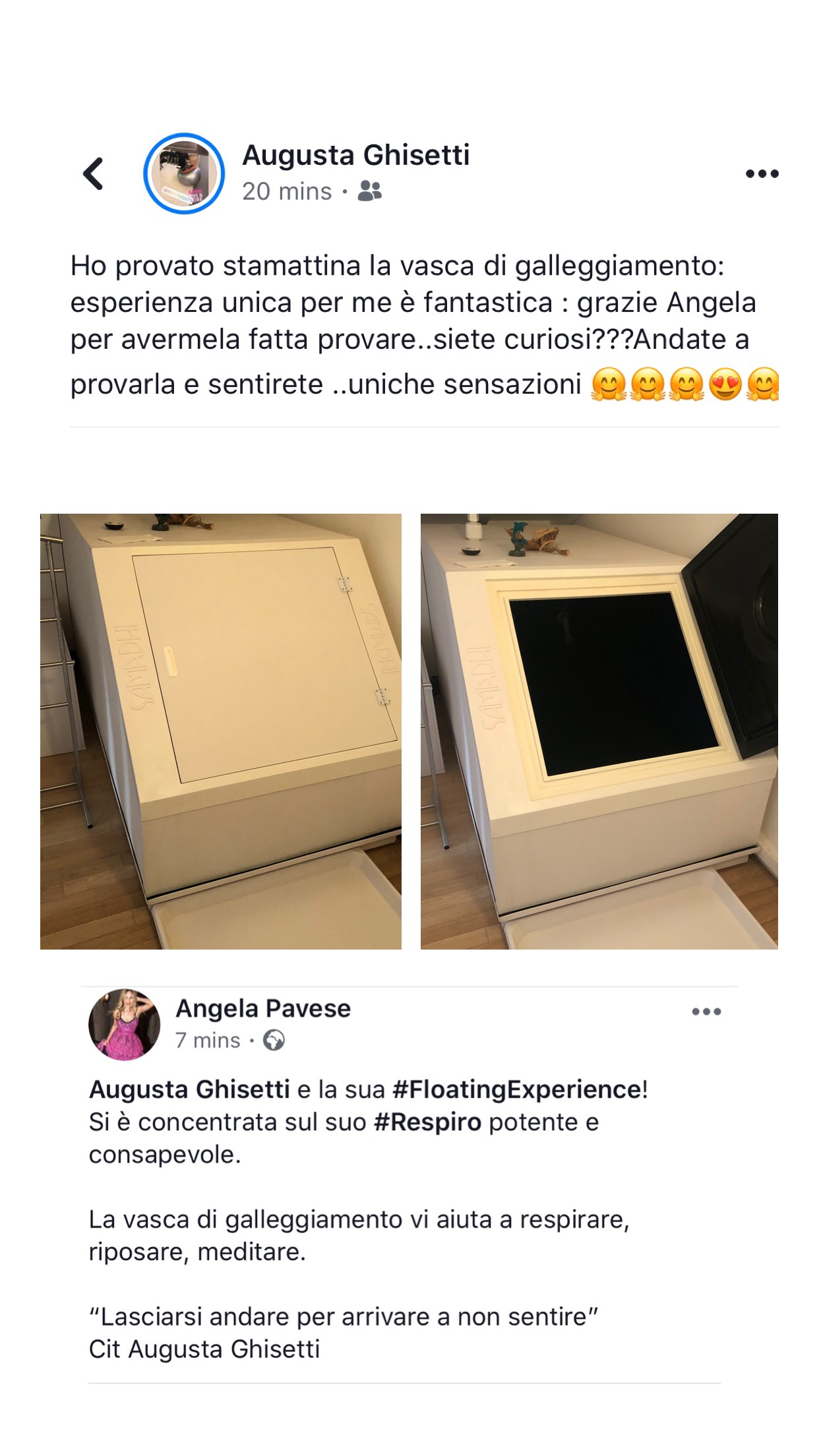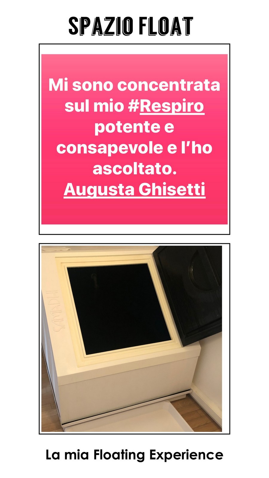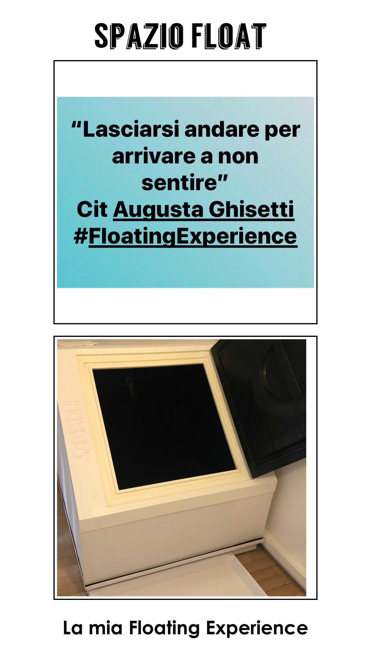 Ringrazio Augusta Ghisetti che ha raccontato sulla pagina Facebook di Spazio Float la sua Floating Experience.