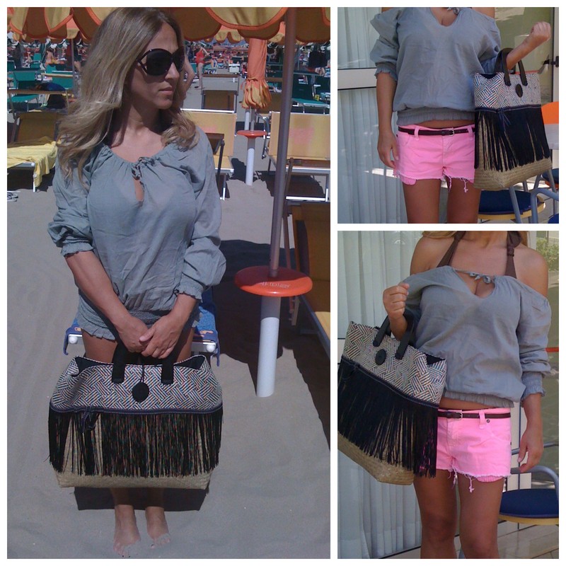 Poi è arrivata la borsa in paglia con le frange molto mare, estate, freschezza e joie de vivre, contiene il mondo, comoda e vivace non vedo l’ora arrivi la mia estate per poterla riprendere.
