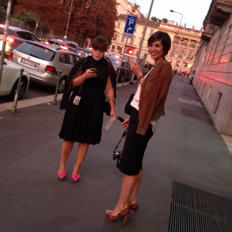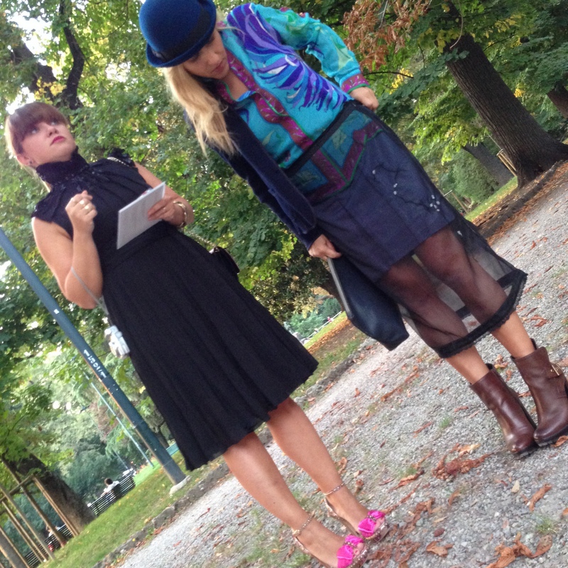 P.S. Io con il mio look arrangiato di fine fashion week ormai avevo finito tutti gli abiti a disposizione. Ma qualche idea mi era ancora rimasta e ho fatto un mix tra capi di Alessandro Dell’Acqua e una vecchia vintage camicia Pucci! Spero di non avere fatto sfigurare la Carola nel suo splendido abito nero. Pochi scatti rubati improvvisati, qualitativamente non sono il massimo, ma il meglio delle emozioni è dentro di noi! Ciao!