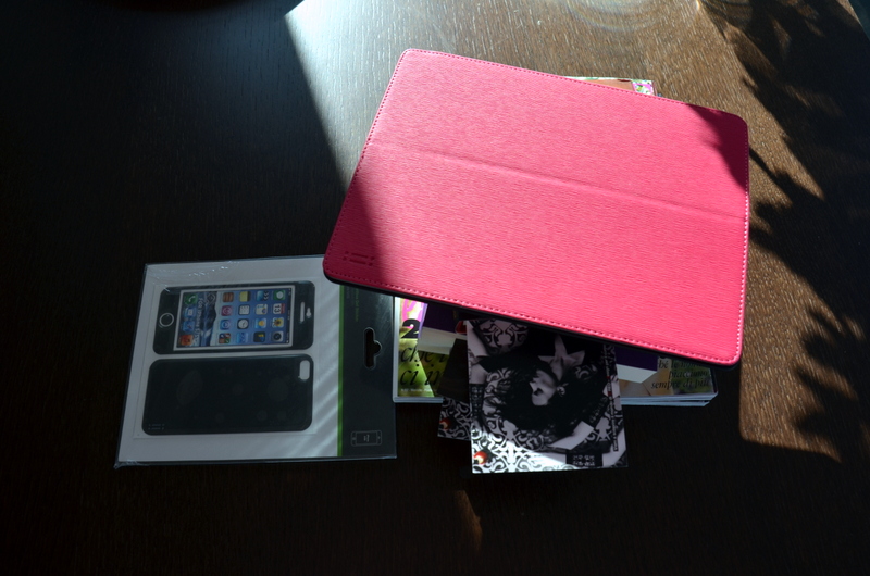 Ho giò comprato diverse cose. Una cover per Ipad Air, comoda da usare per la visualizzazione verticale ed orizzontale, rigorosamente fucsia, il colore femminile per antonomasia, molto leggera e antigraffio. Uno sticker nero fronte e retro ” the second skin of my Iphone” fatto di resina di gel che protegge lo smartphone da incidenti fortuiti. Un bumper in plastica e gomma o cover come dir si voglia, bianca flower power, elegante e raffinata dotata nella confezione di un panno per la pulizia, un applicatore in plastica rigido e un adesivo che rimuove la polvere. Ne comprerò ancora. Si trovano anche nei supermercati nel reparto elettronica e computer.