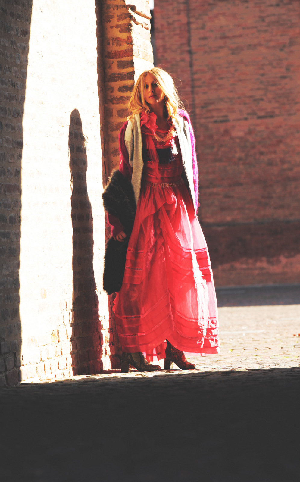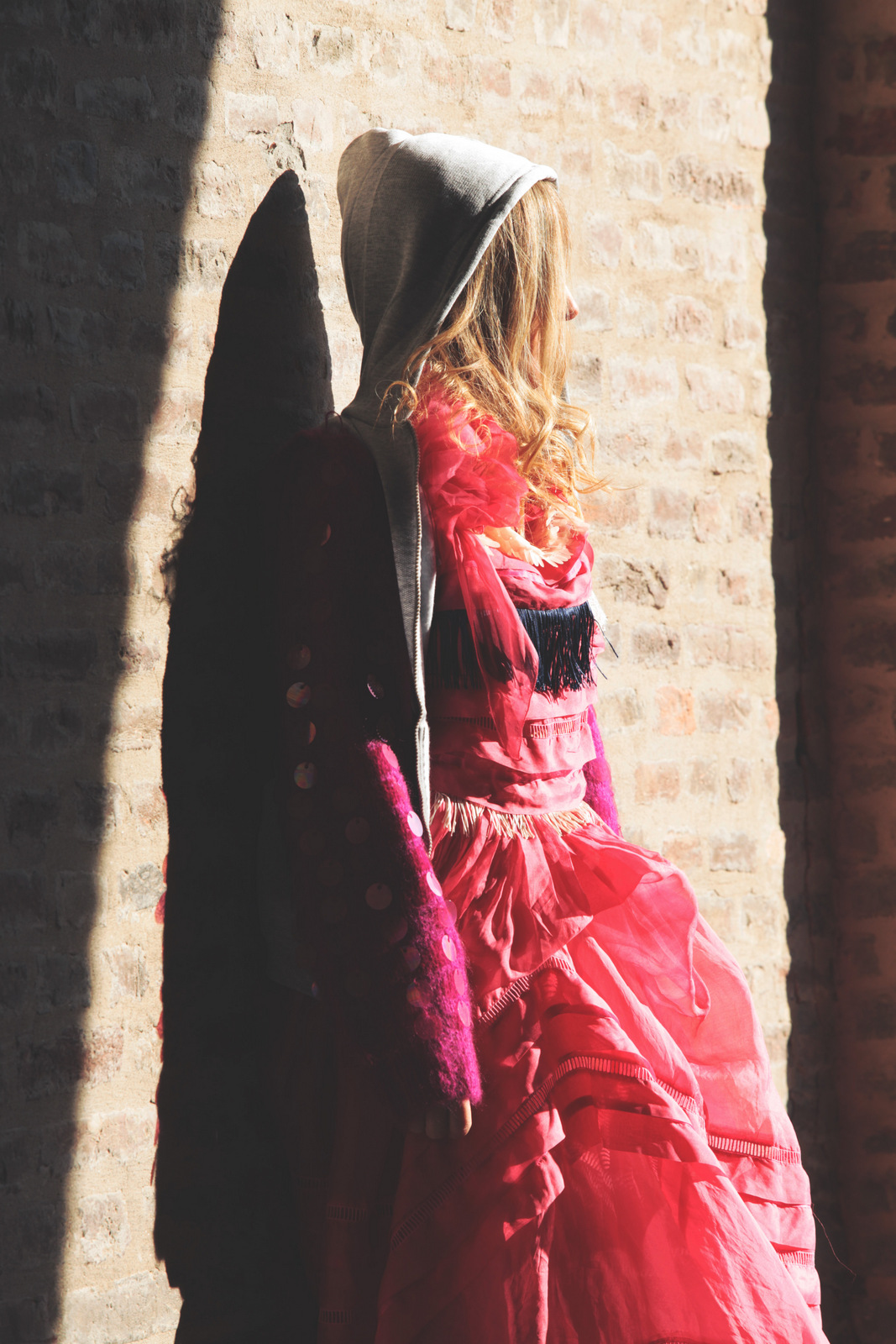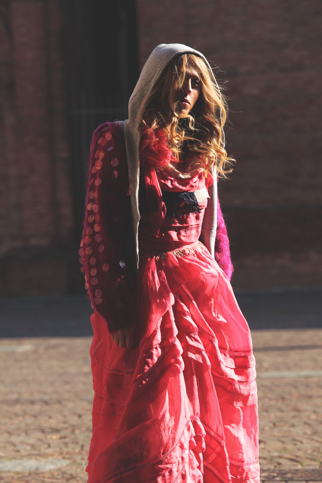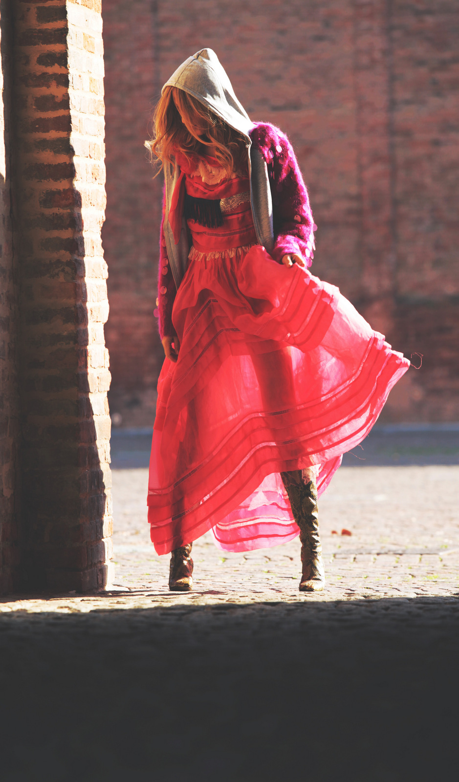 Vi sembrerò Cappuccetto Rosso oppure Alice nel paese delle meraviglie. Io direi né l’uno né l’altro. Questa volta nessuna inspiration favoleggiante. Questa sono solo io che, in una fredda mattina di autunno, si è lasciata sorprendere dagli scatti di Niccolo Barone per Loladarling, per le vie di Carpi, in bicicletta.