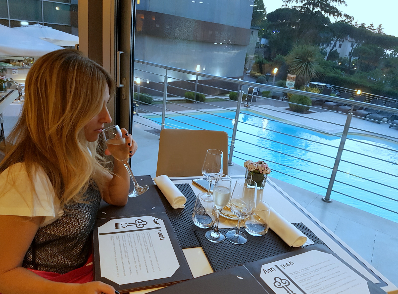 Due calici io ed Eleonora che ha scattato le foto, una sbirciatina in cucina ad osservare il lavoro dello staff che con abilità e fantasia ha preparato i nostri piatti.