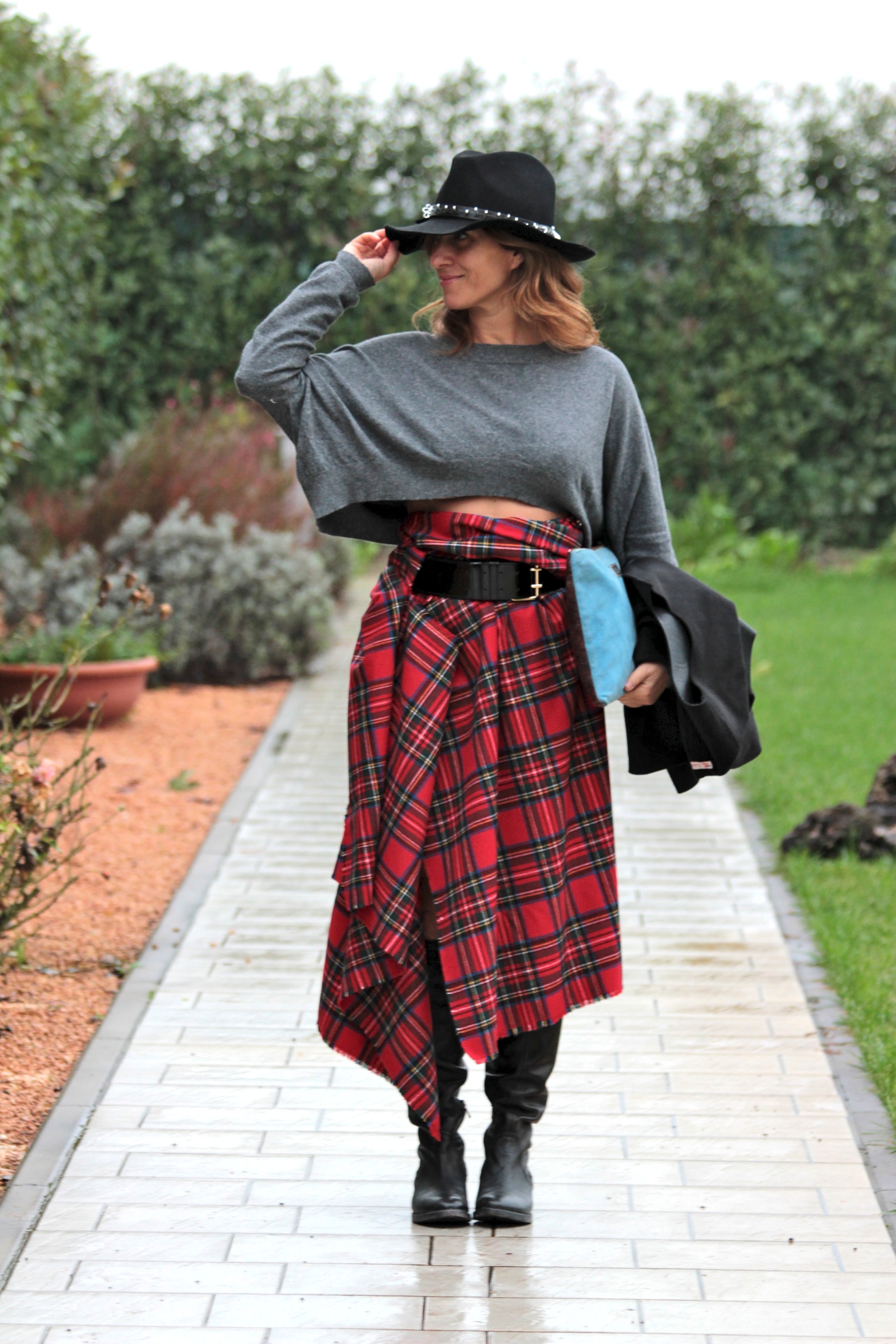 Il tartan piace molto anche a me, lo amo anche come stampa per pantaloni a sigaretta, da portare in ufficio. Bella la tua gonna ‘irregolare’, l’hai abbinata benissimo