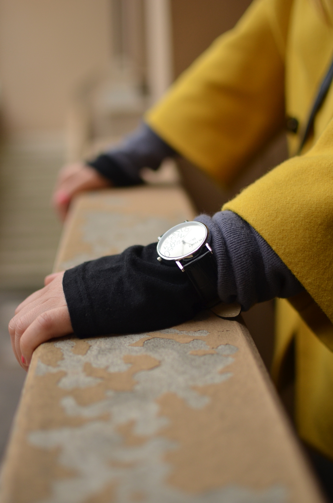Ecco io sento di appartenere ad un orologio senza tempo, con lancette che girano all’infinito senza segnare nessun numero, su tacchi gialli e comodi, . Via! Scacciateli via! I numeri sono etichette che disturbano lo stile!