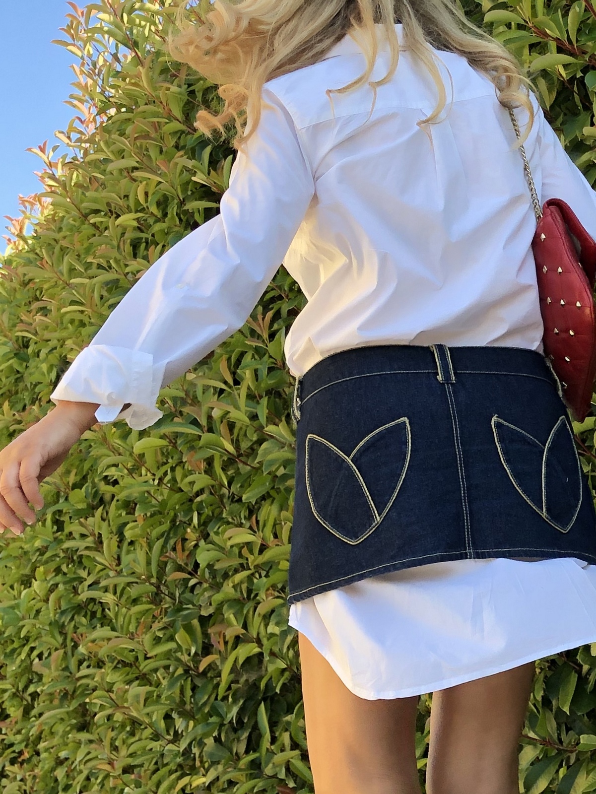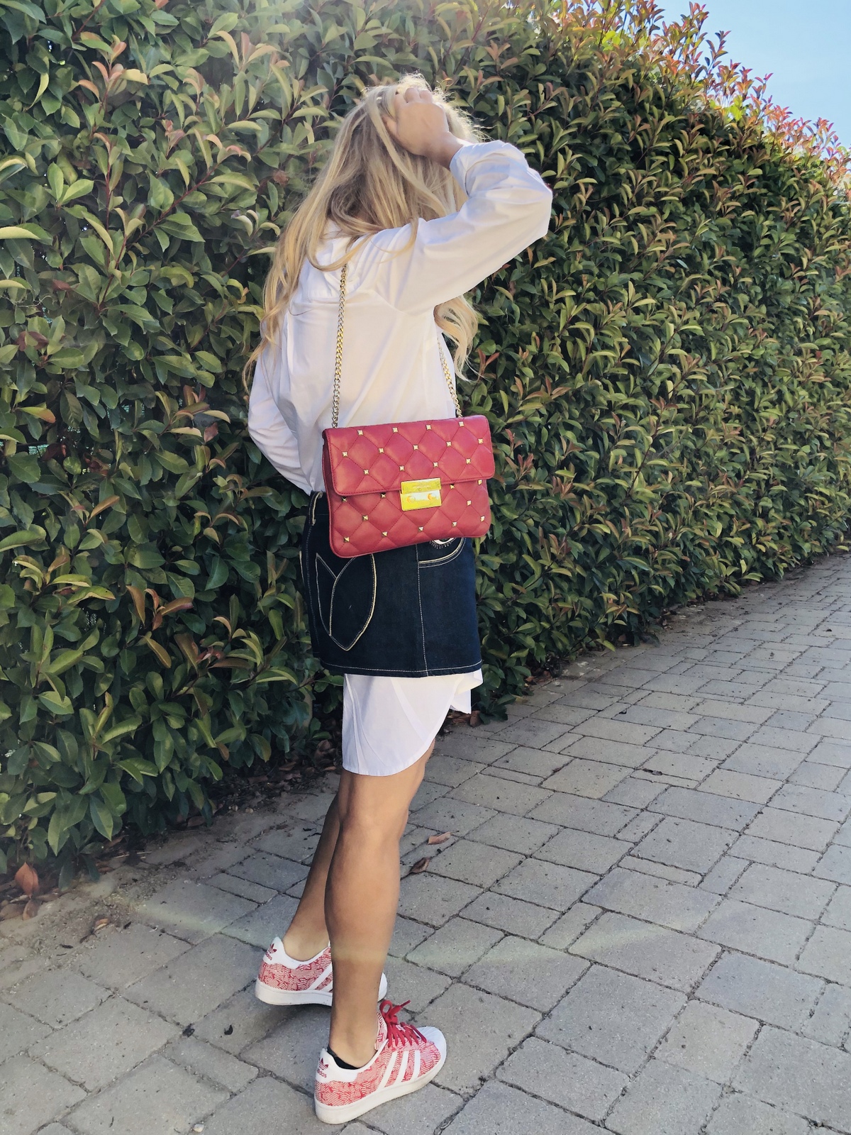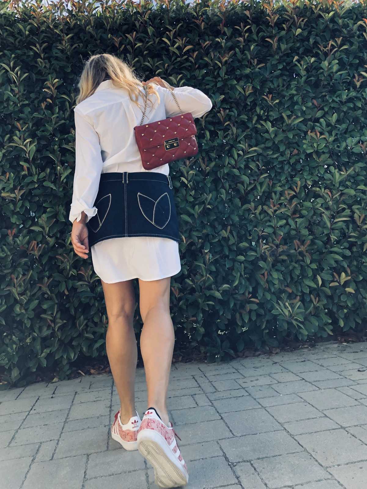 Una camicia bianca lunga infilata dentro la mini mi permette una certa comodità e funzionalità.
