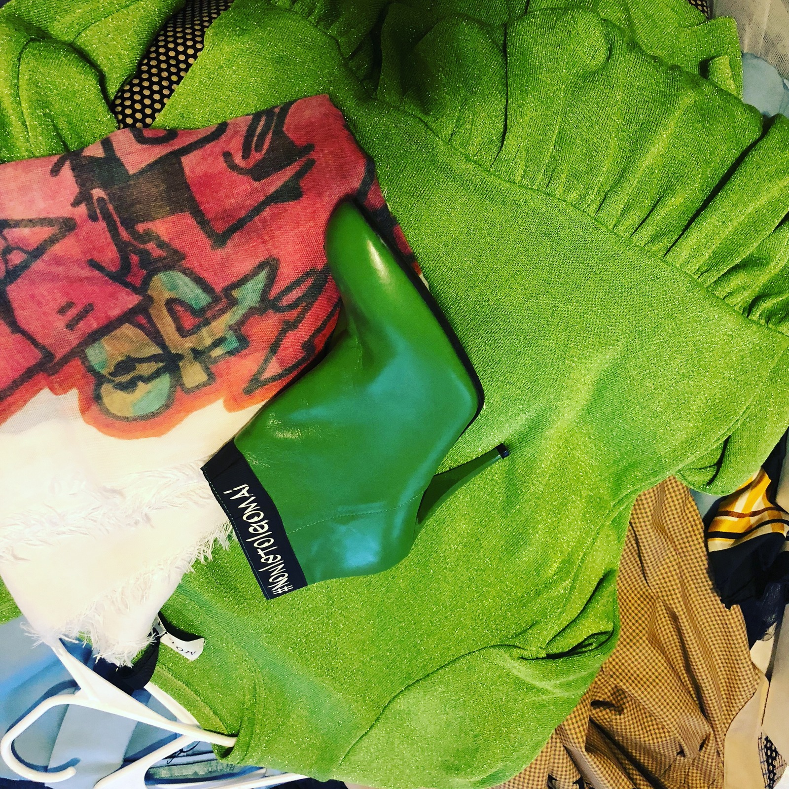 Mentre cammino saltellando sui comodi tacchi dei boots verdi DellaPaolini. Mentre impugno la mia nuova shopper bag Twobet e mentre mi avvolgo in una delicata e morbida stola stampa graffiti di DellaPaolini. Insomma sono firmata made in Italy dalla testa ai piedi illuminata dai gioielli di AnnachiaraCollezioni!