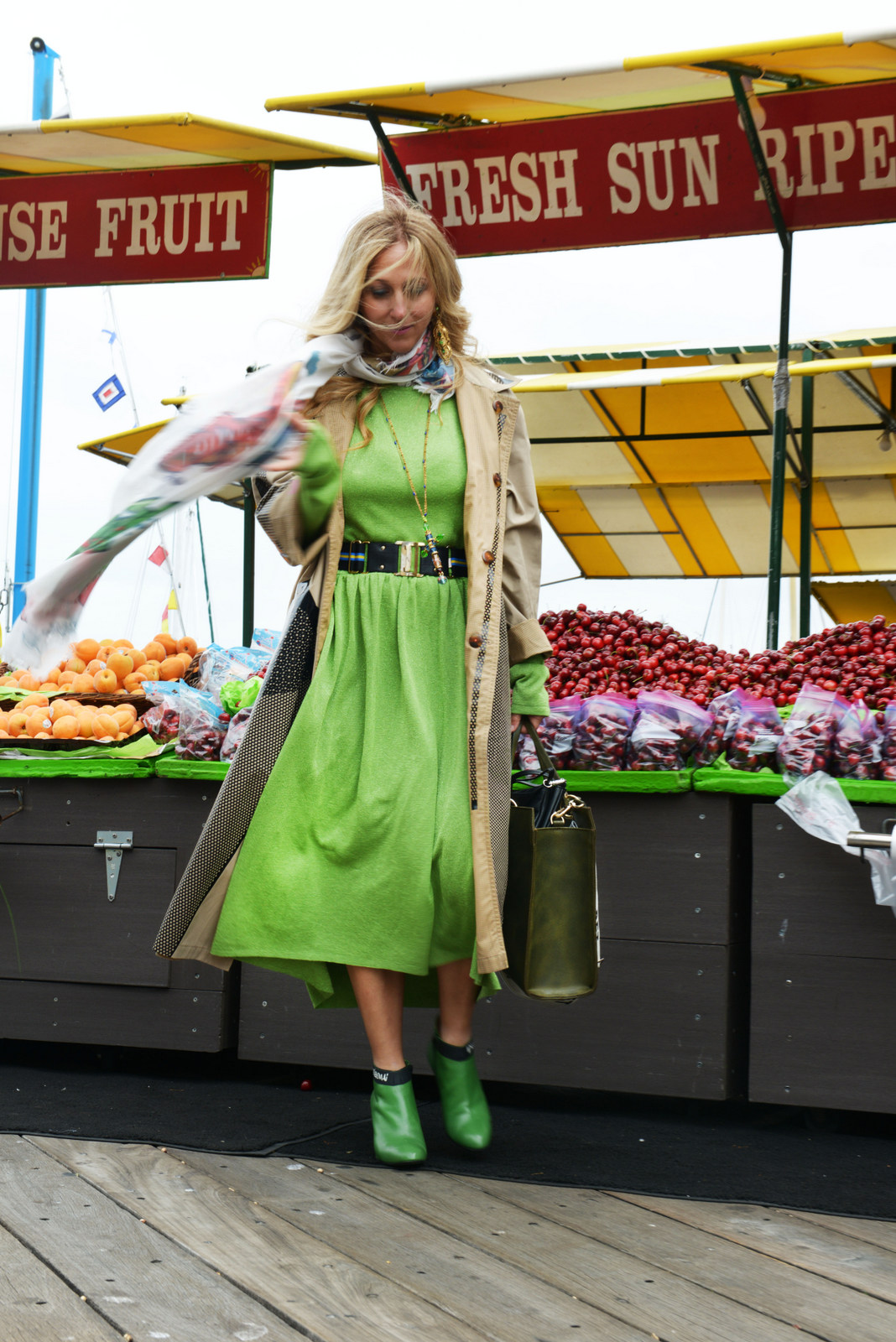 You wring it out, fold it, roll it up, wrap it up, fill it, close it, duplicate it. It almost looks like the much-coveted trench, perfect for this spring spent in San Francisco. I’m talking about the LolaDarlingClothing Trench-coat. Reversible, since the 1980s, received in Manuela Giovanardi’s laboratory, the brand’s fashion designer, and reproduced, reinterpreted, challenging gravity to create a new way to view fashion, as a lifestyle. Ethical fashion, speaking of recycling, re-use, and sustainability. Shaped around more aware consumption, with a contemporary and enterprising mood. Anyway, I wanted to tell you that it fits any other cloth, after all. Have you seen my look, immortalized by Claudia Anzalone’s clicks? The deep, brilliant shade of green by Moulage is the perfect touch to illuminate this gray day we spent at Pier 39, watching the sea lions. While I walk jolting on the comfortable heels of the boots by Della Paolini; while I grip my new TwoBet shopper bag; while I wrap myself in a delicate soft graffiti-printed Della Paolini scarf. In conclusion, I wear Made-in-Italy from head to toe, illuminated by the jewels by AnnachiaraCollezioni!